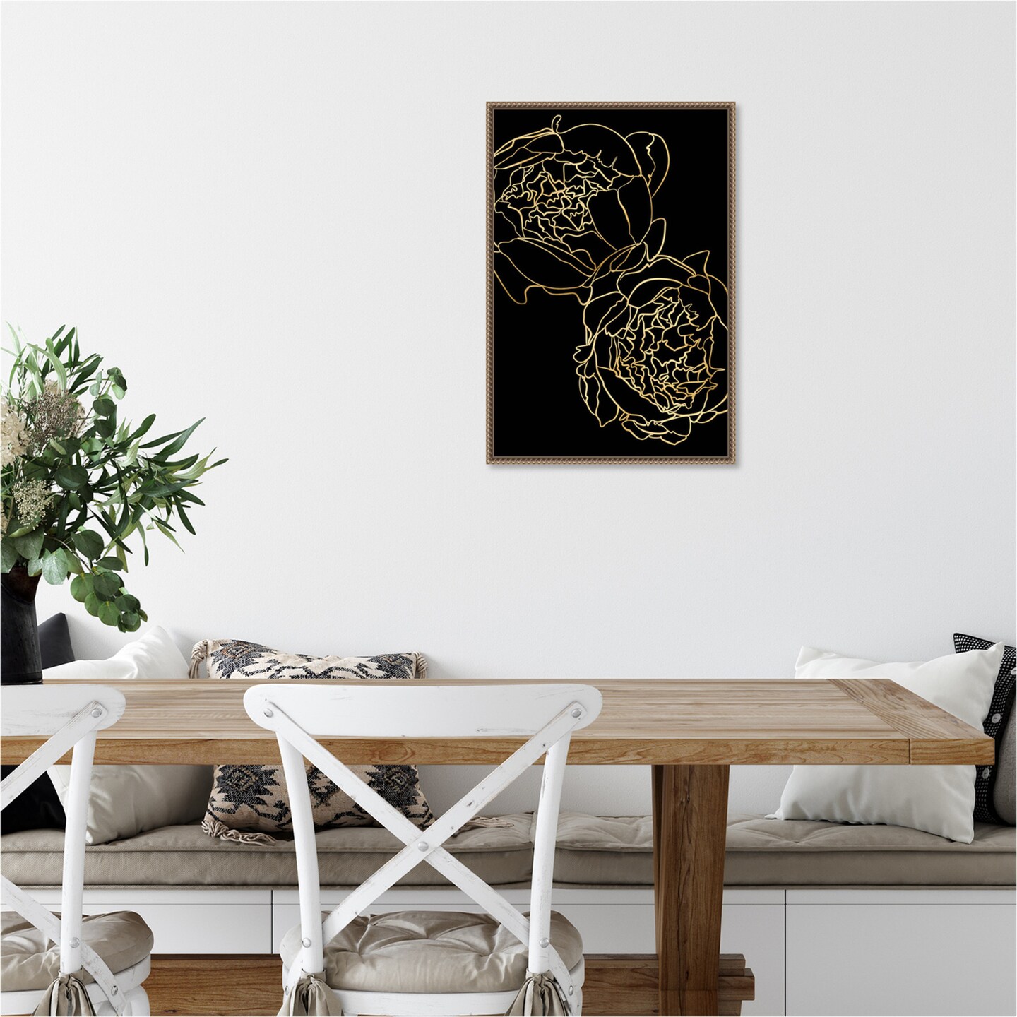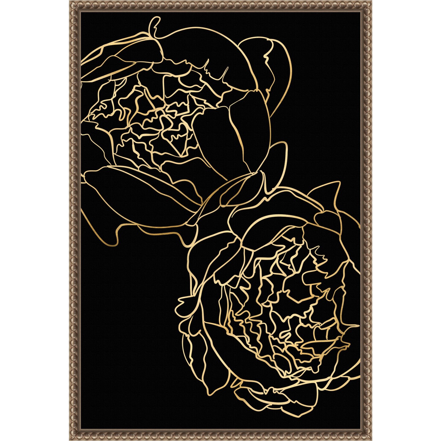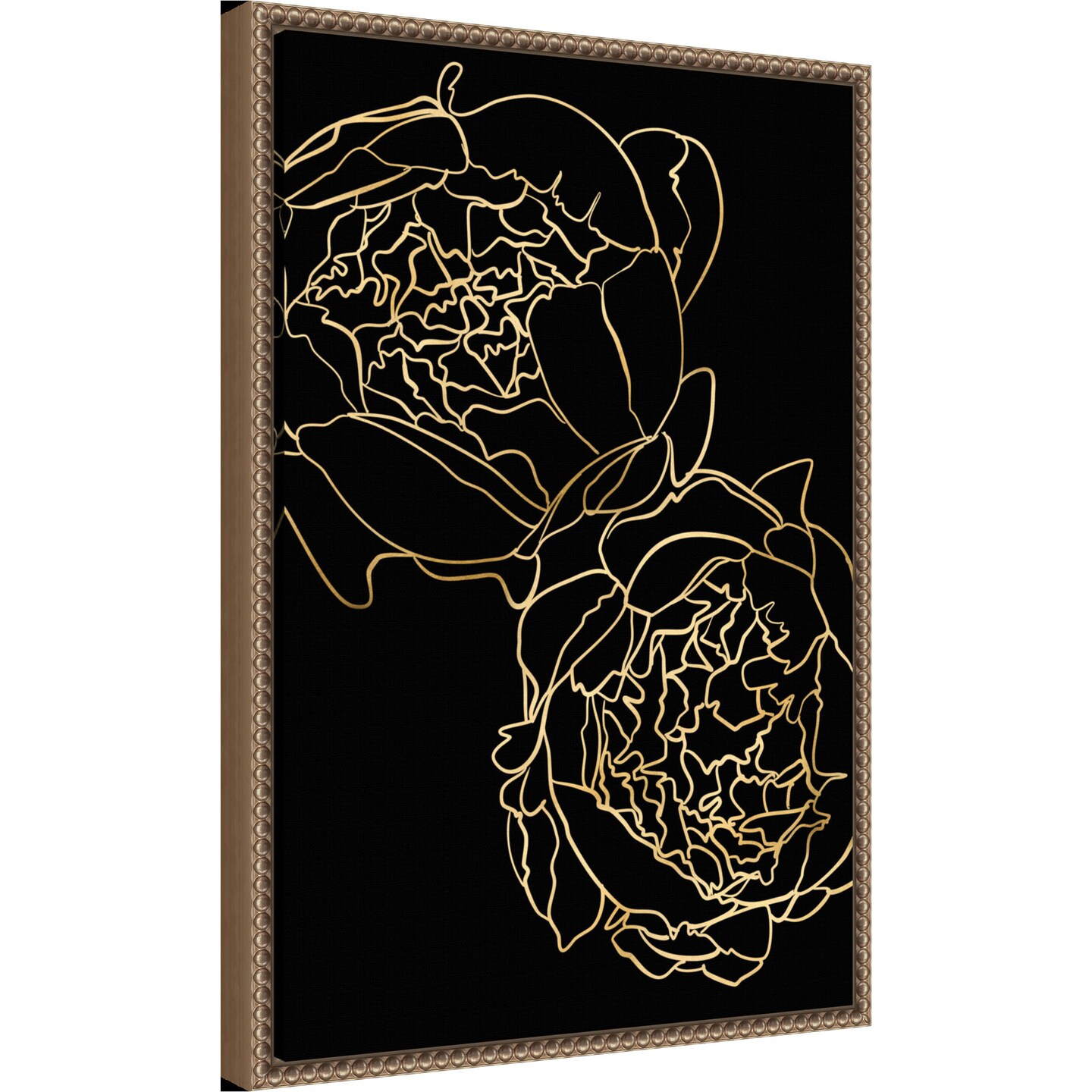 Sally's peonies in gold and black by Rosana Laiz Blursbyai Framed Canvas Wall Art