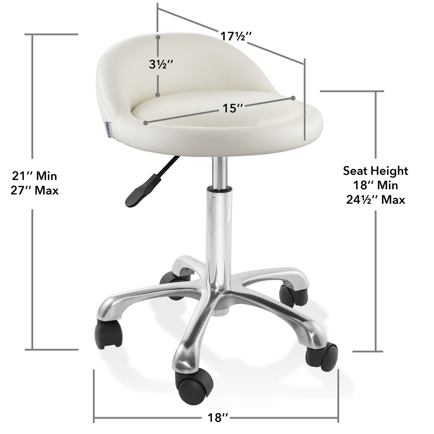 Saloniture Rolling Hydraulic Salon Stool with Low Backrest - Adjustable Swivel Chair for Spa, Shop, Salon, Massage, or Medical Office