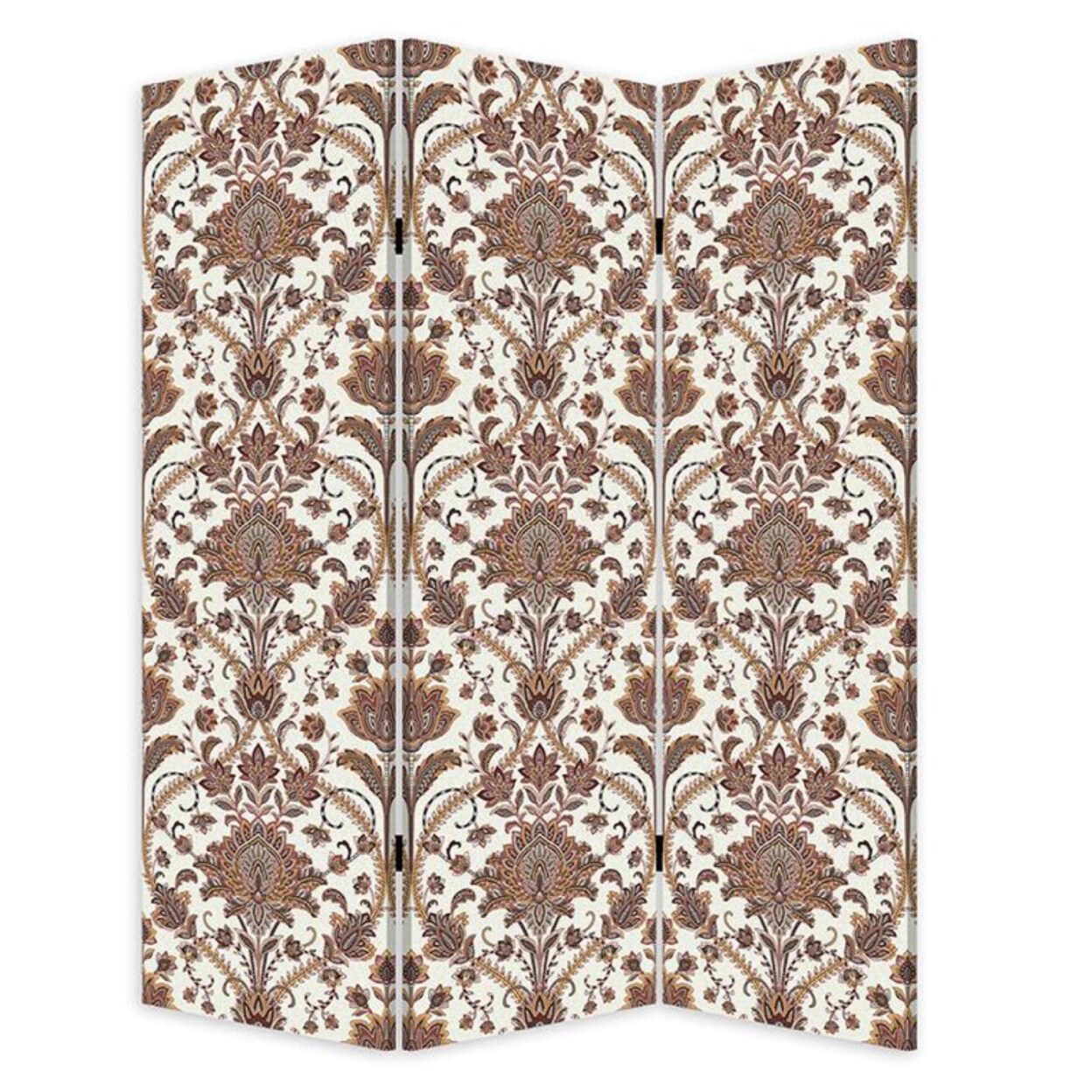 Saltoro Sherpi 72 Inch 3 Panel Canvas Screen Room Divider, Dual Sided Baroque, White Brown-