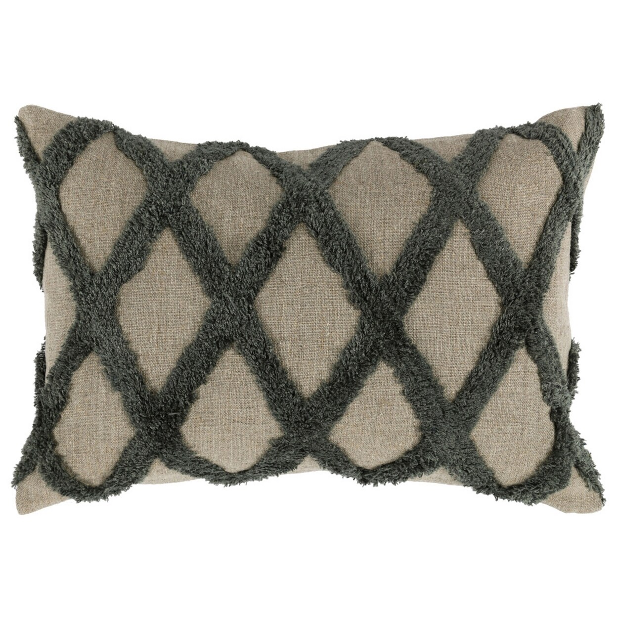 Saltoro Sherpi Lo 14 x 20 Lumbar Linen Accent Throw Pillow, Tufted Diamond Pattern, Green-