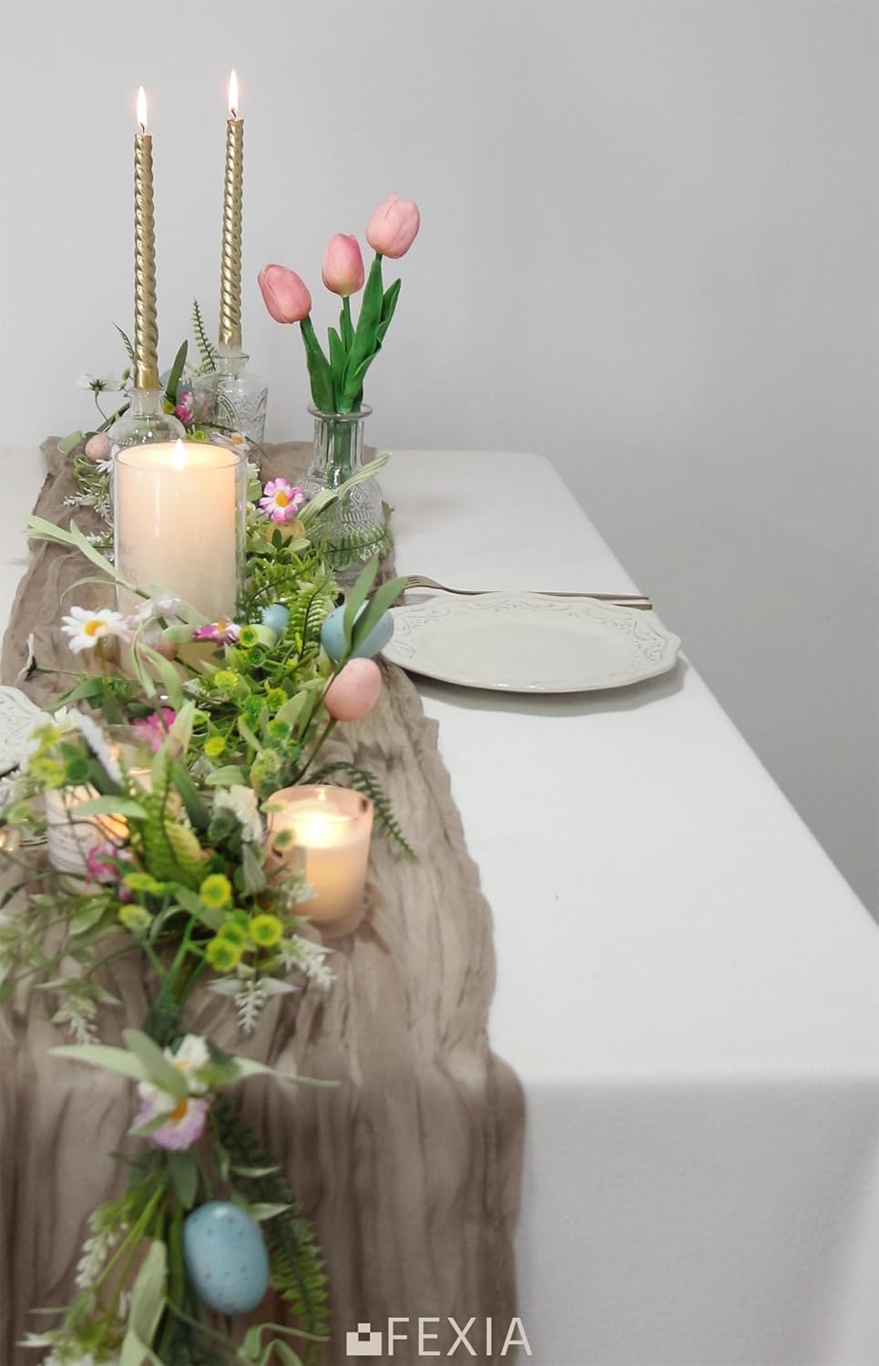 Sand Cheesecloth Table Runner 35x120 Inches Spring Easter Nude Gauze Table Runner(Nude)120"L x 35"W