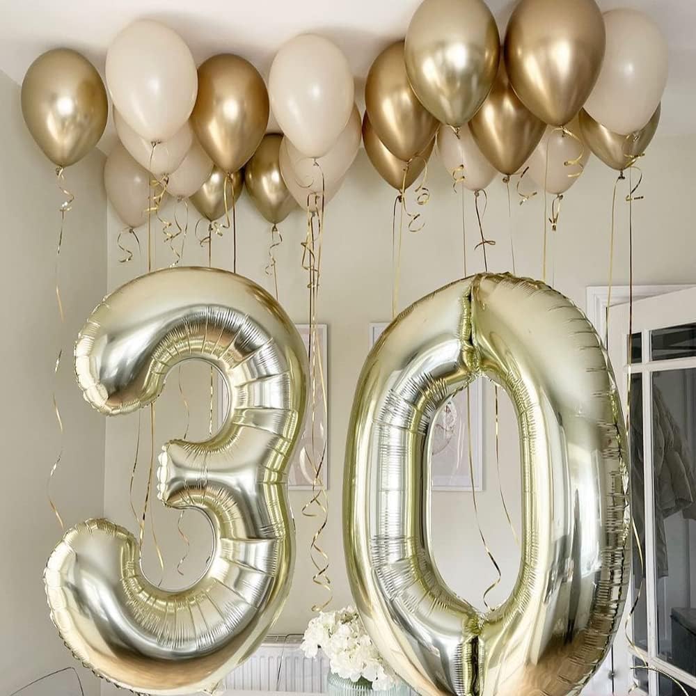 Sand White and Gold Balloons Set, 60 Pcs 12 Inch White Sand Gold Latex Balloons Gold and White Party Balloons