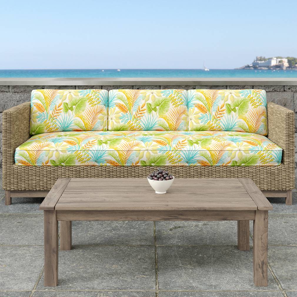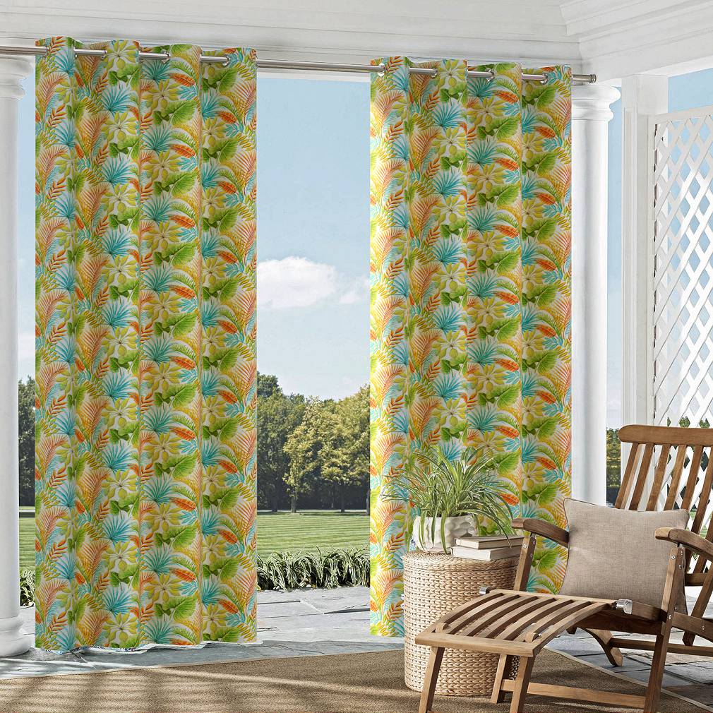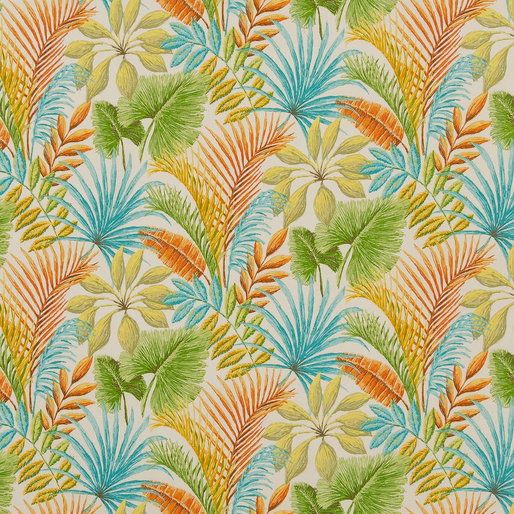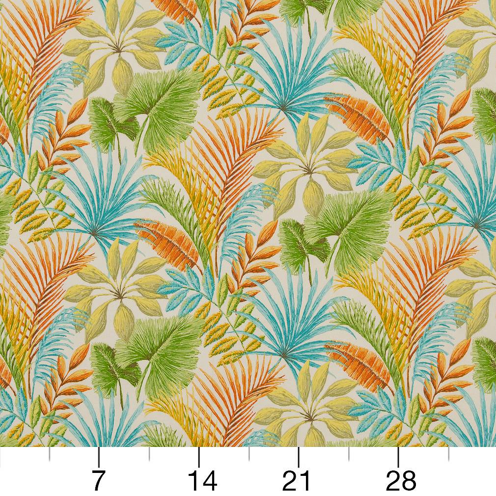 Sanibel - Aqua & Teal,Orange & Rust Leaves,Tropical & Botanical Upholstery Fabric 54 Inches"