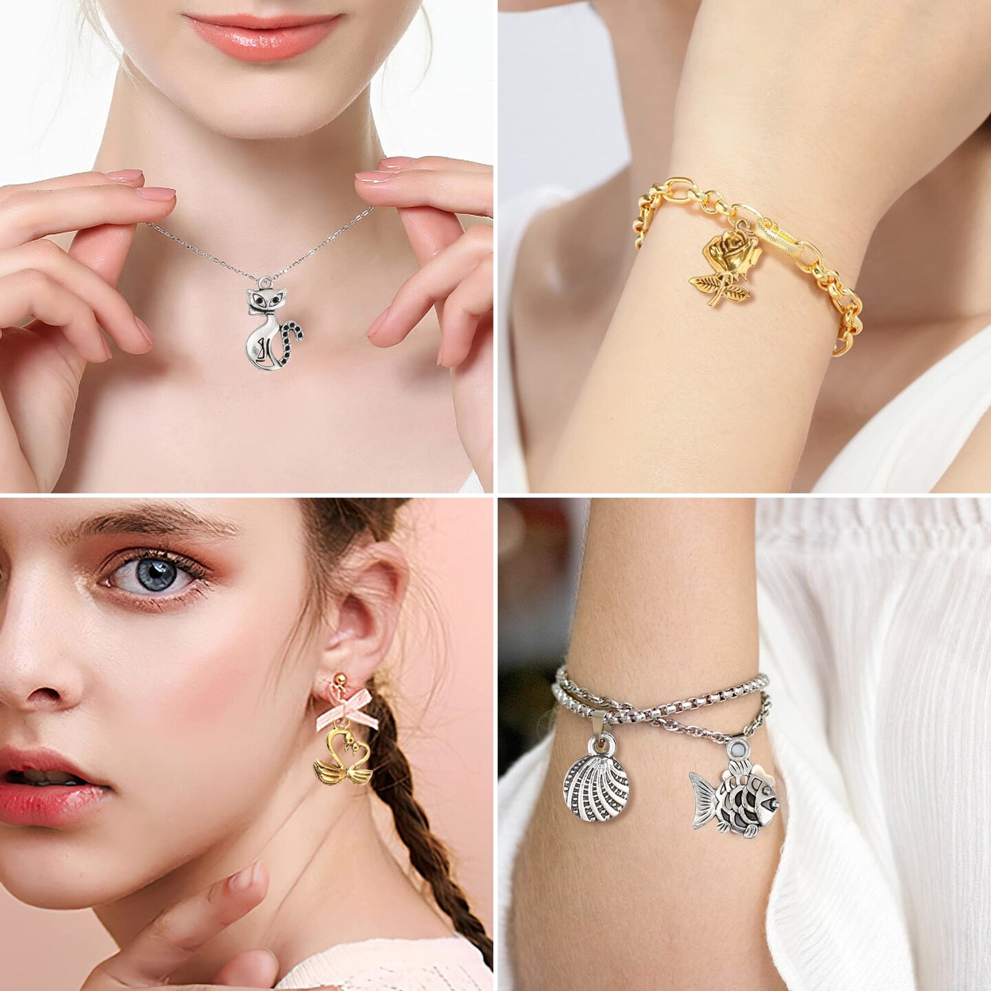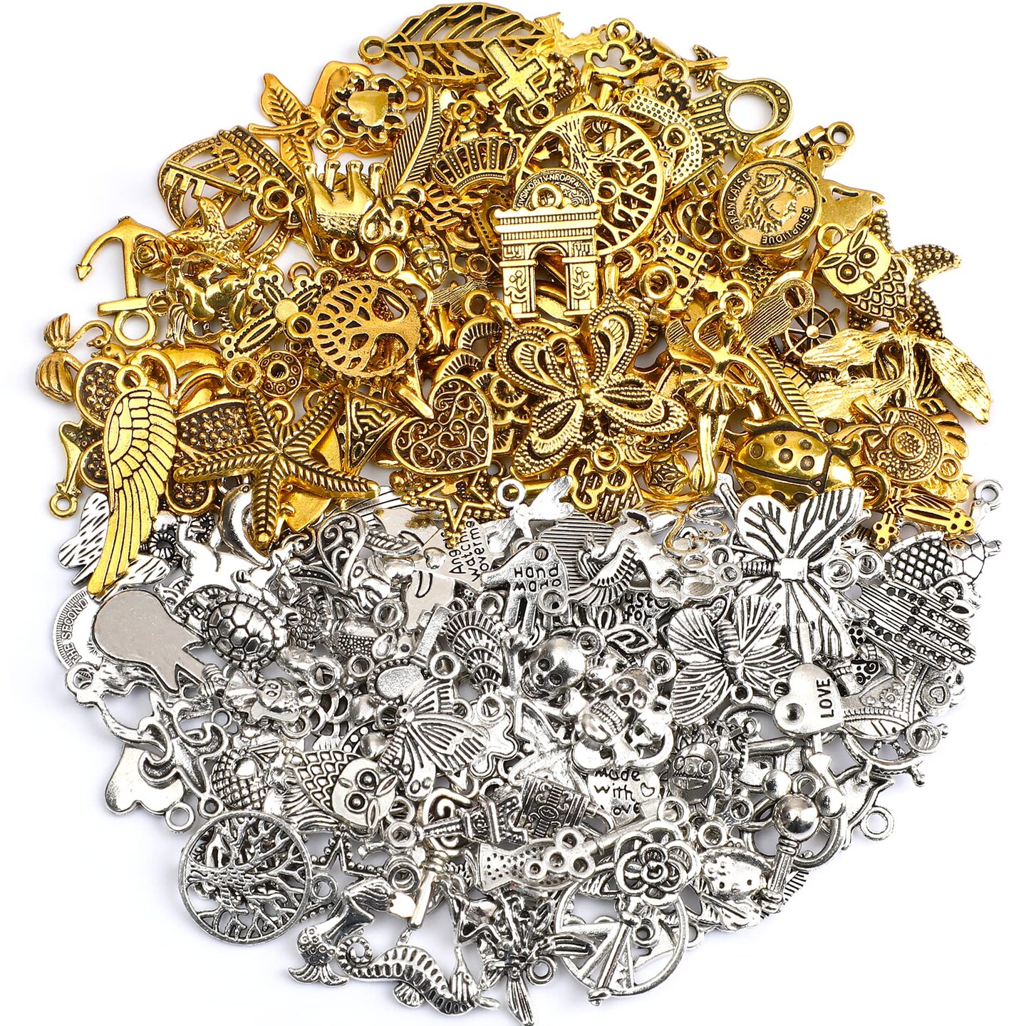 SANNIX 200Pcs Bulk Jewelry Making Charms Tibetan Antique Silver Gold Charm Pendants for DIY Bracelet Necklace Making Crafts