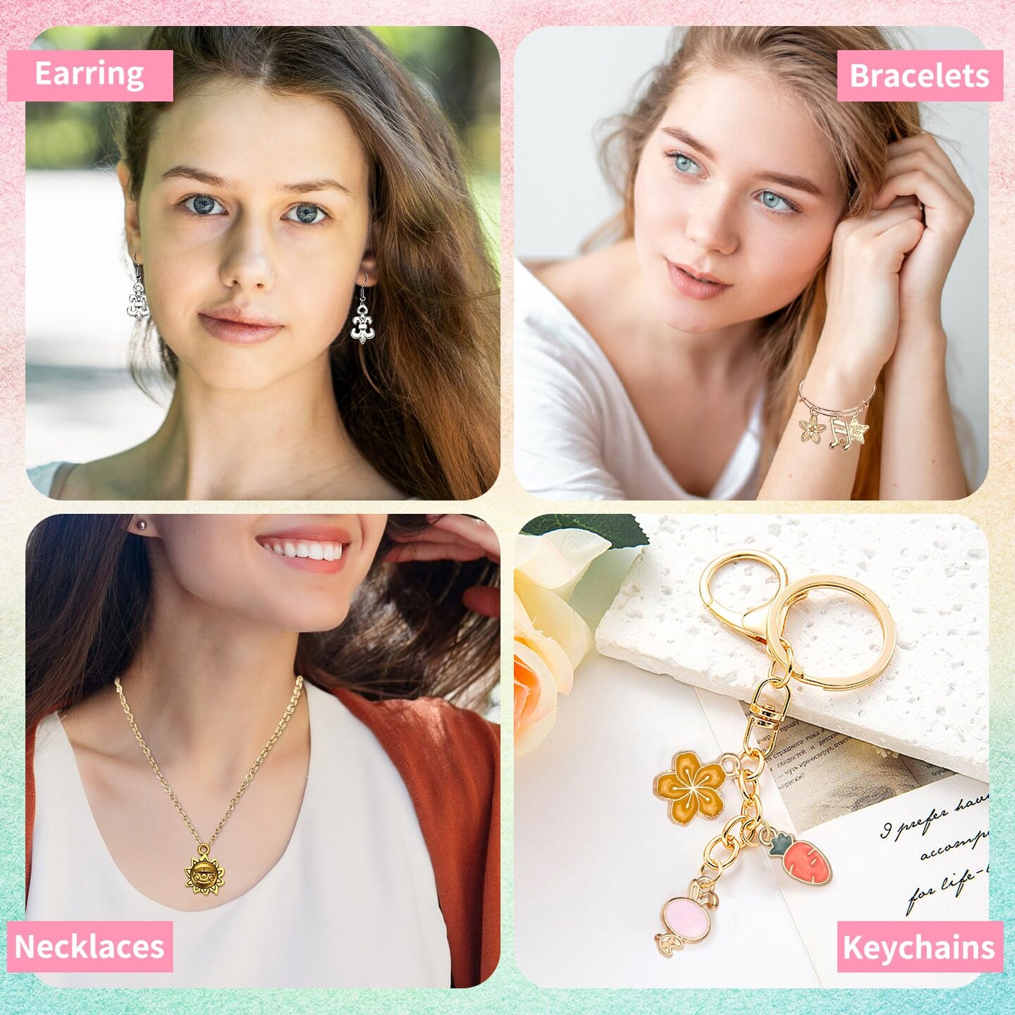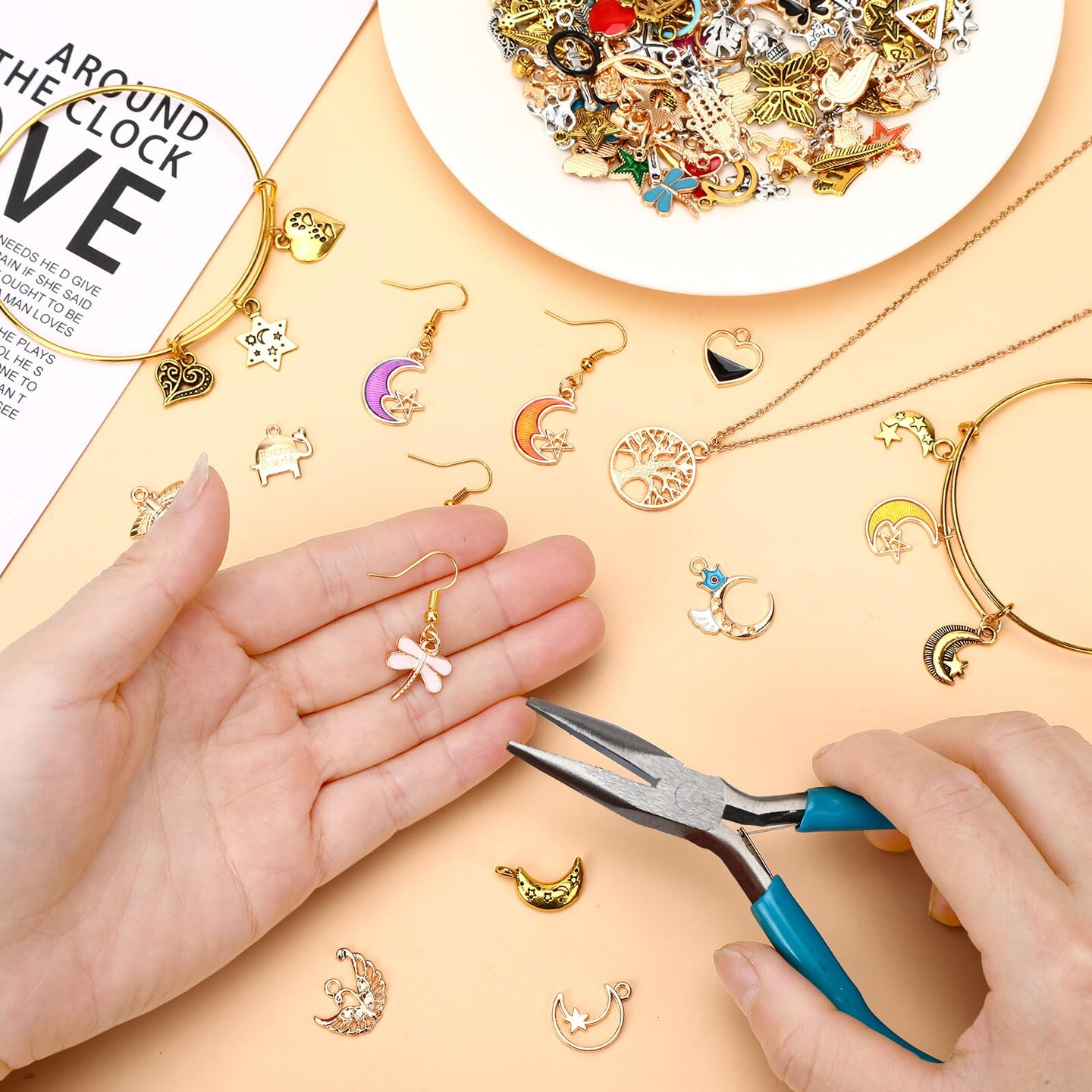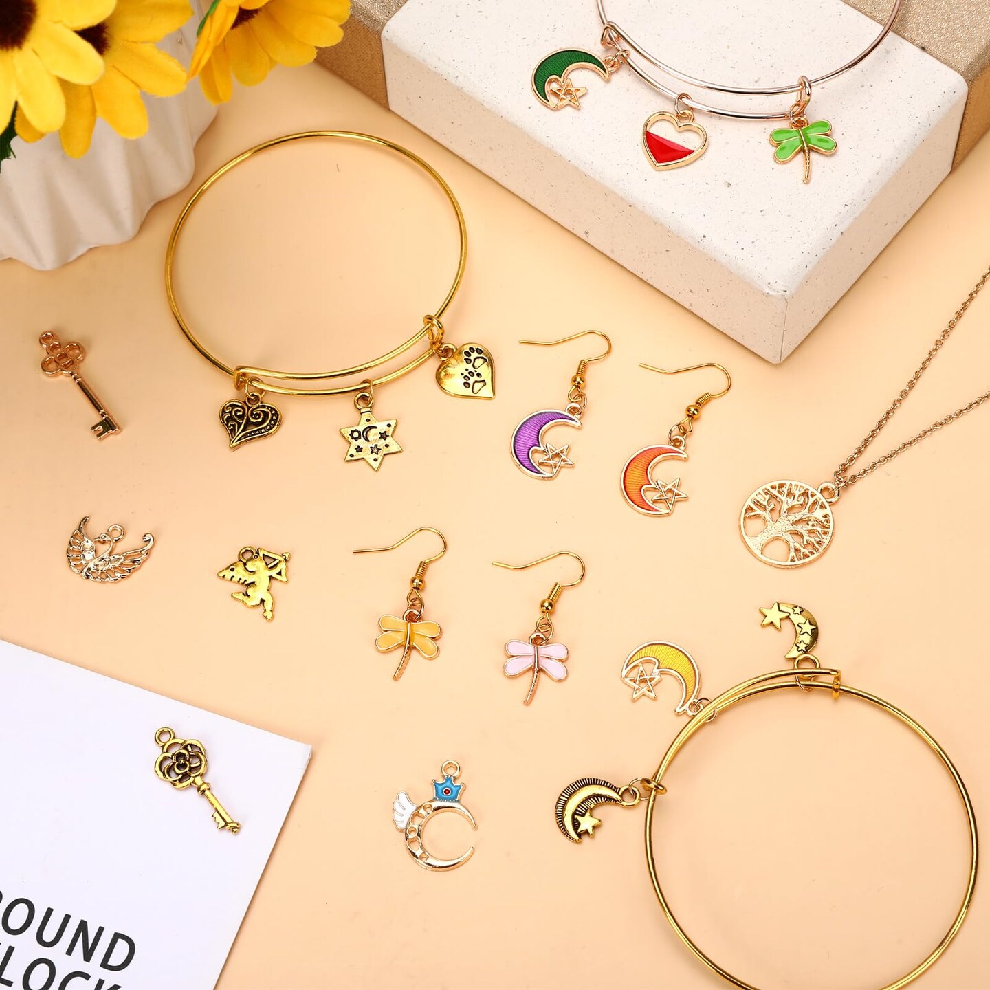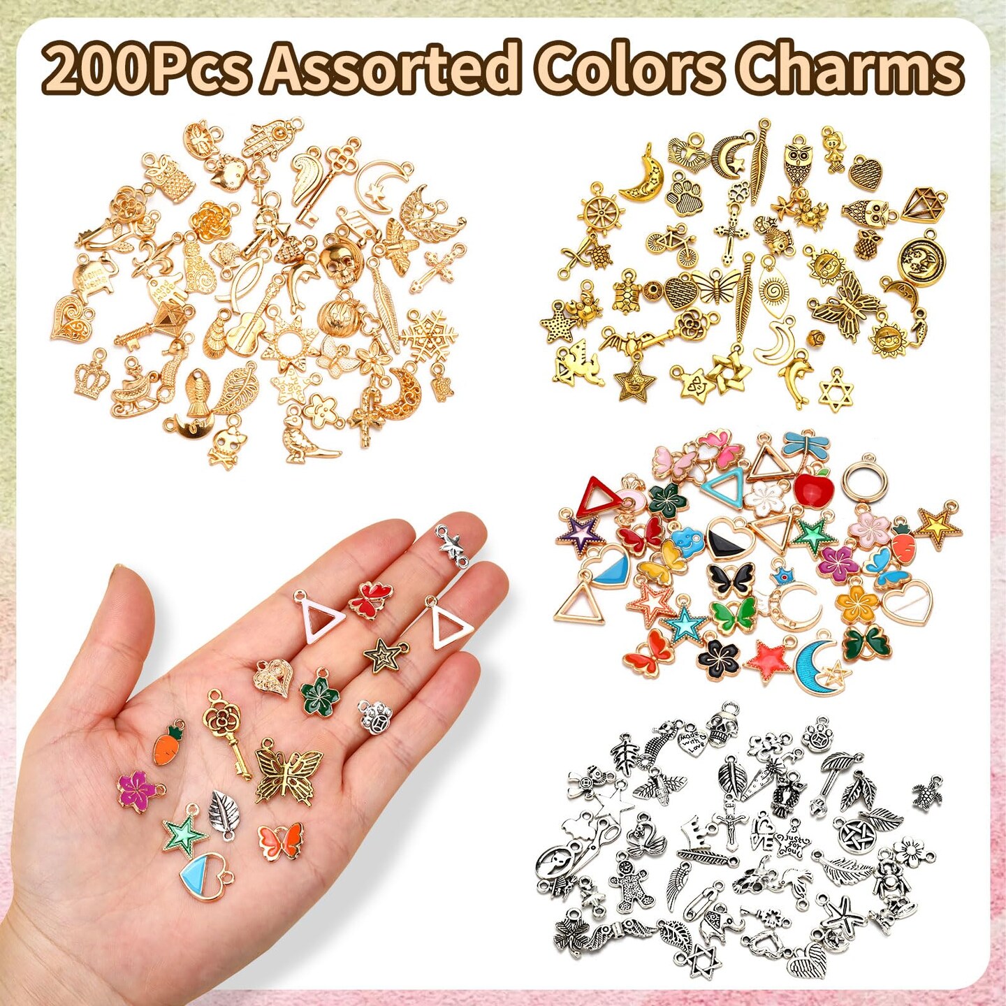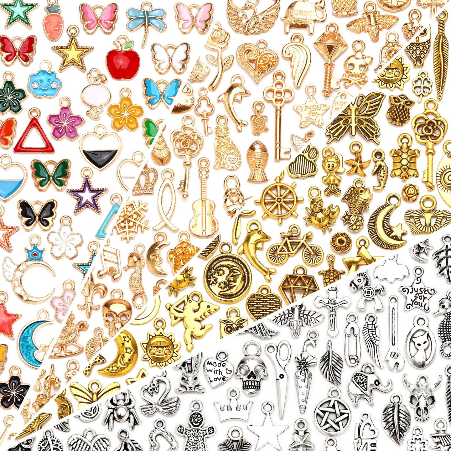 SANNIX 200Pcs Charms for Jewelry Making, Assorted Enamel Charms, Mixed Antique Gold Tibetan Silver Jewelry Bangle Charm Pendants for Bracelet Necklace Earrings Craft Supplies