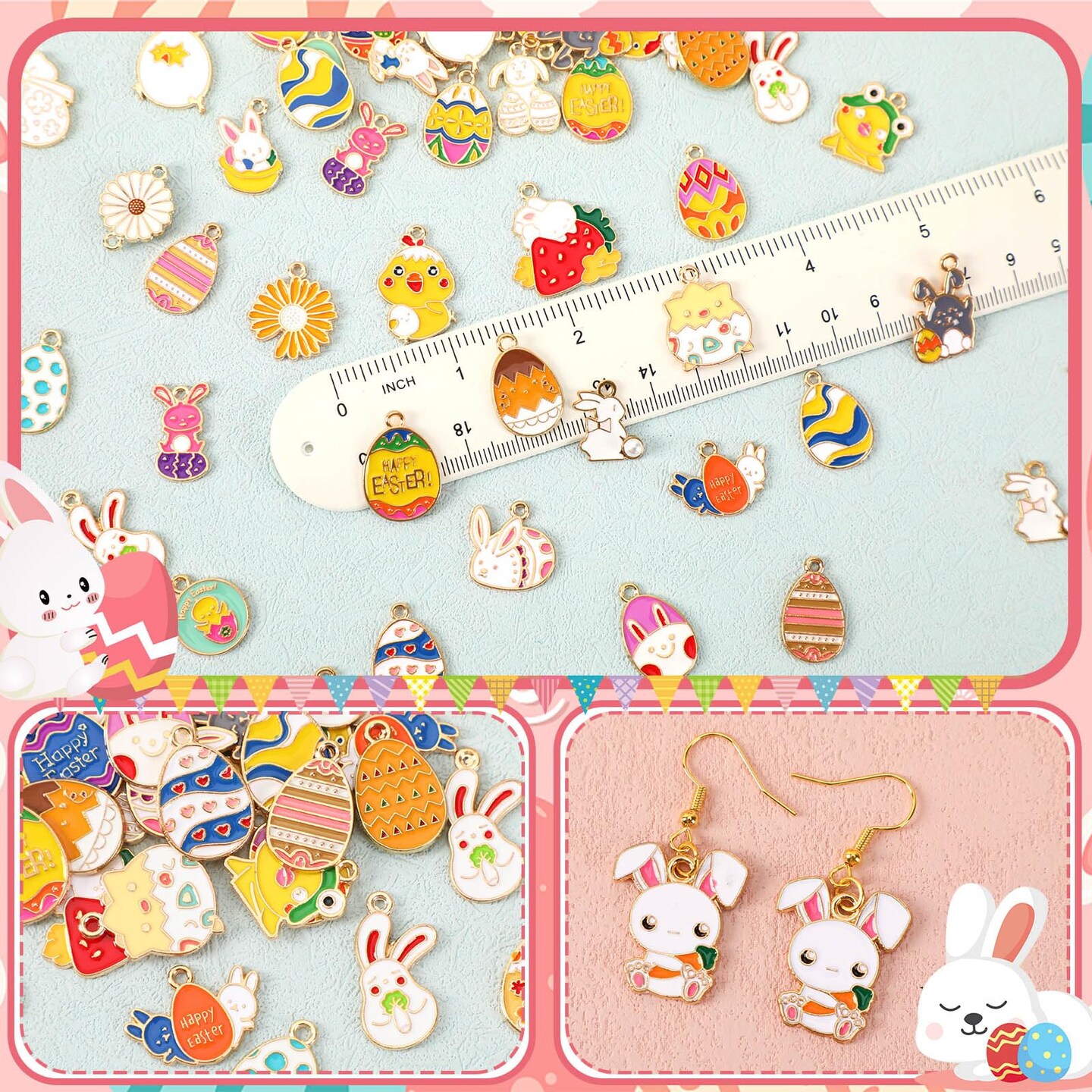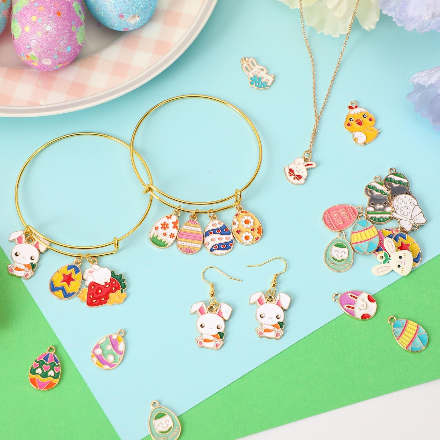 SANNIX 350pc Easter Charms for Jewelry Making - Bulk Easter Egg Bunny Rabbit Pendant Charms for Bracelet, Necklace, Earring Crafts