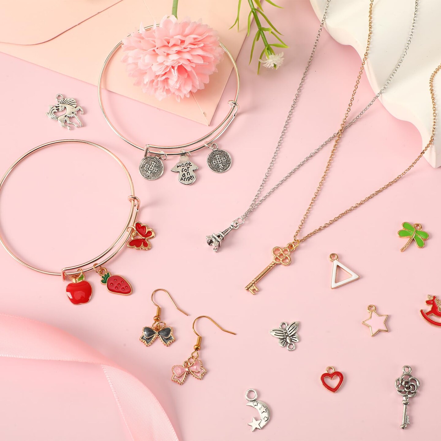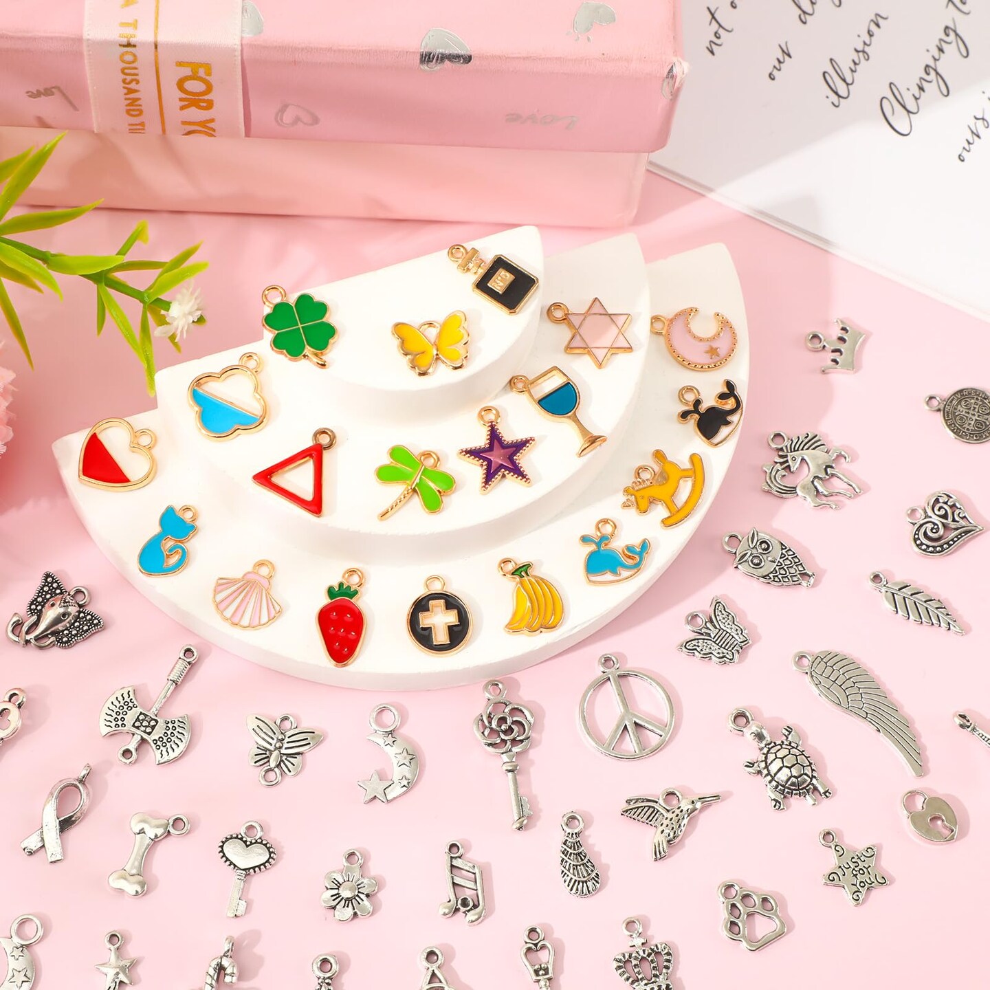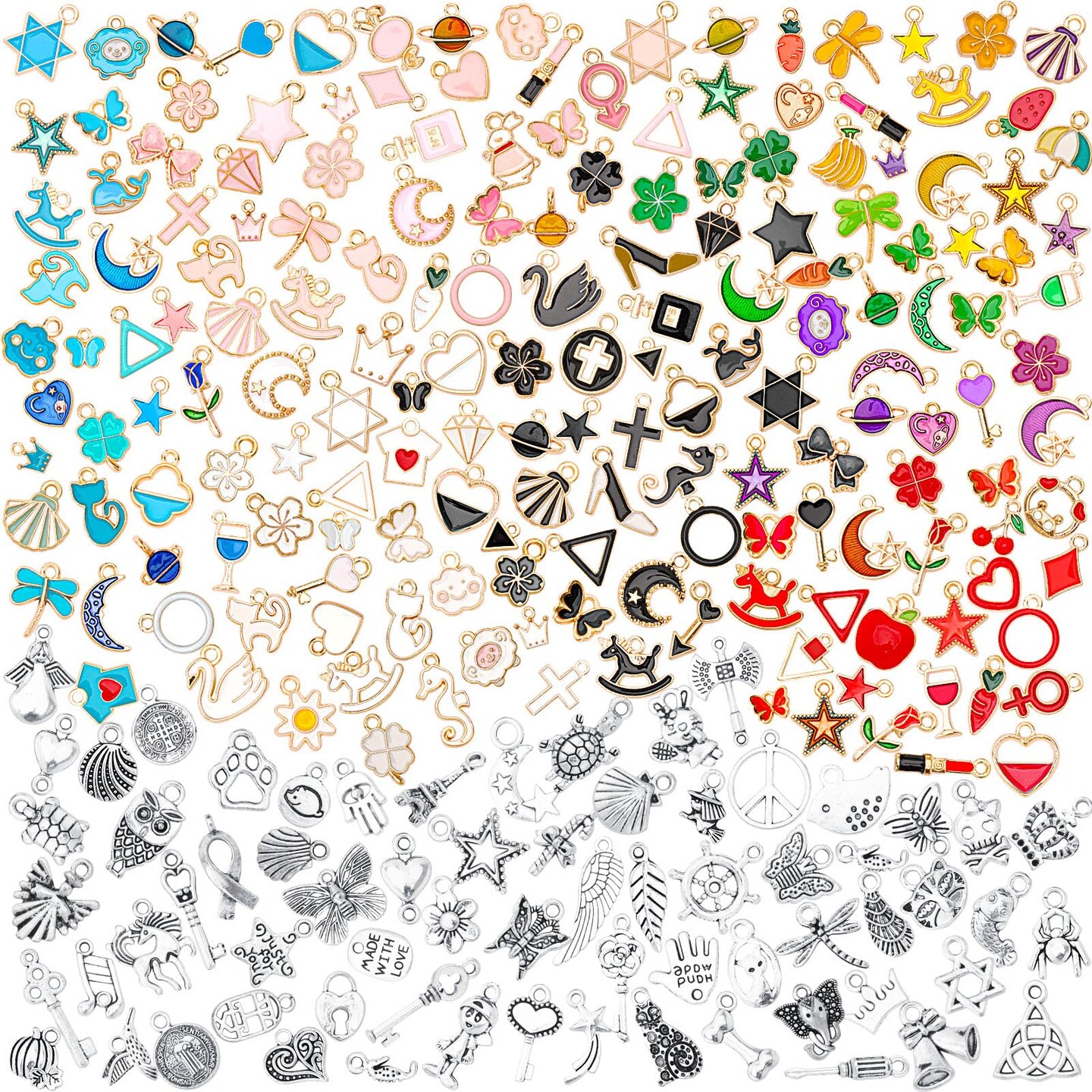 SANNIX 350Pcs Charm for Jewelry Making, Assorted Gold Enamel Charms, Mixed Bulk Tibetan Silver Jewelry Bangle Charm Pendants for DIY Necklace Bracelet Earring Craft Supplies