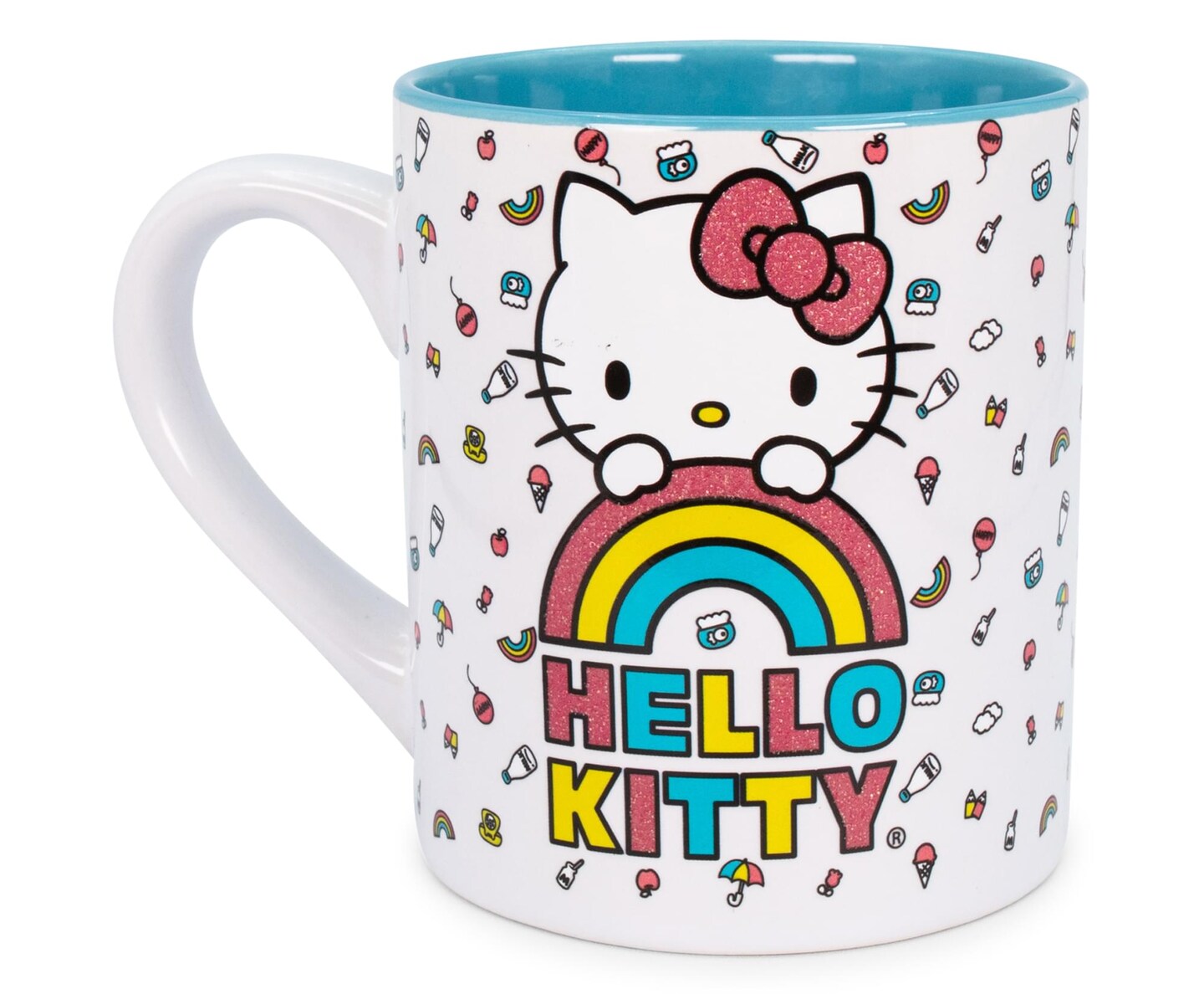 Sanrio Hello Kitty Rainbow Glitter Ceramic Mug | Holds 14 Ounces