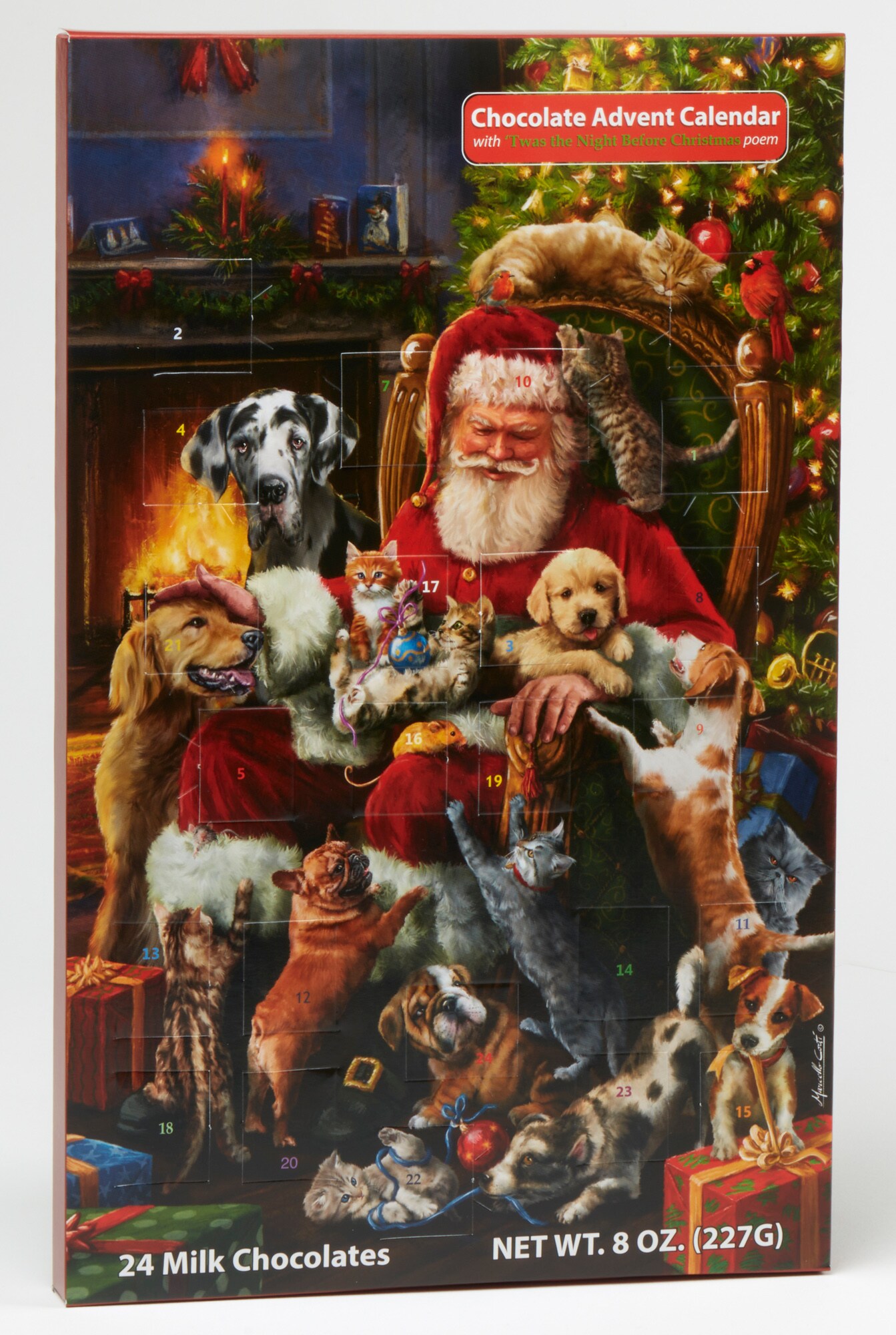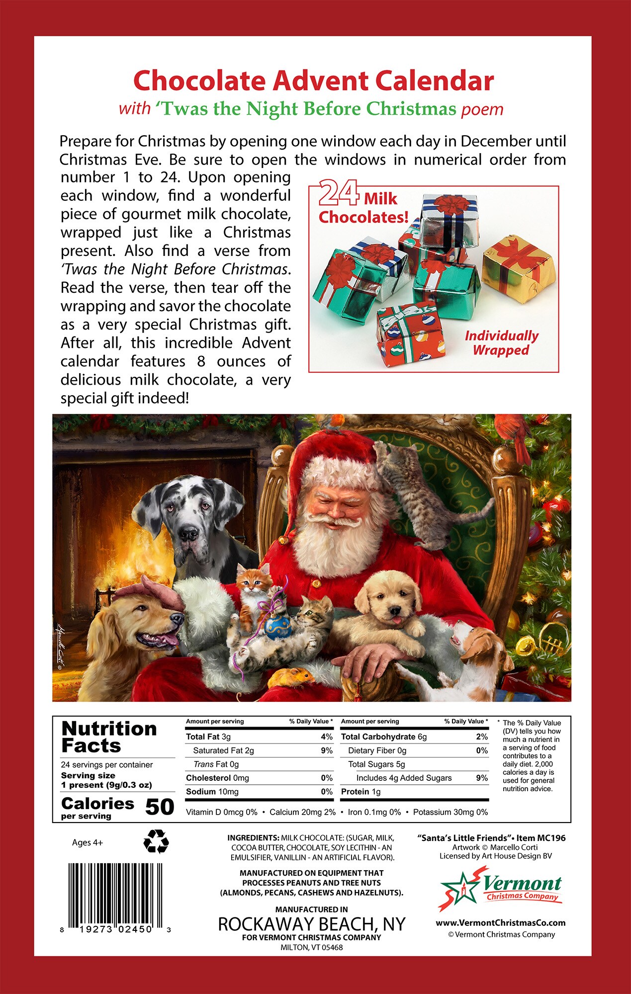Santa's Little Friends Chocolate Advent Calendar by Vermont Christmas Company - Full Half Pound of Delicious Milk Chocolate, Individually Wrapped - Twas the Night Before Christmas