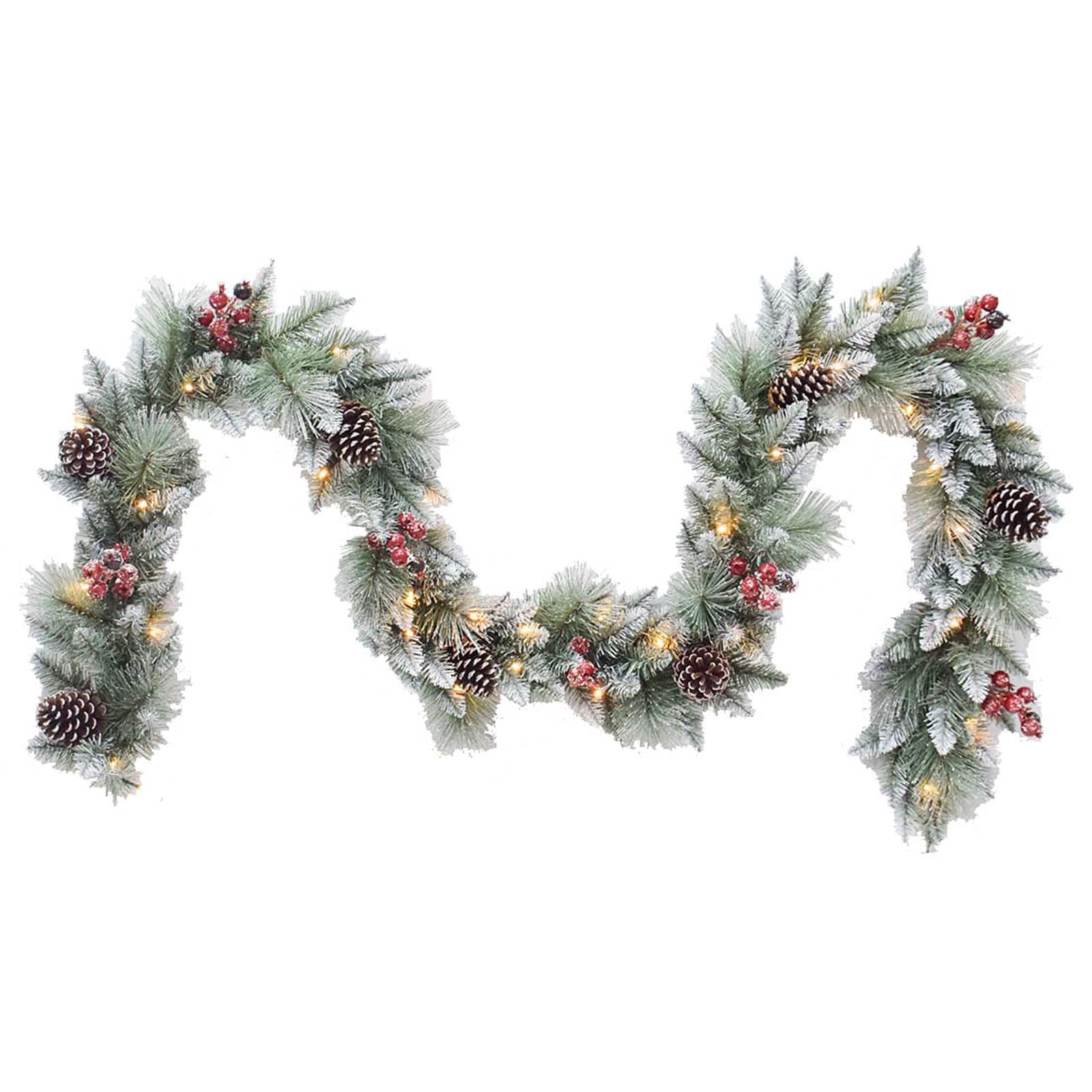 Santa's Workshop 9ft. Pre-Lit Glitter Mixed Garland