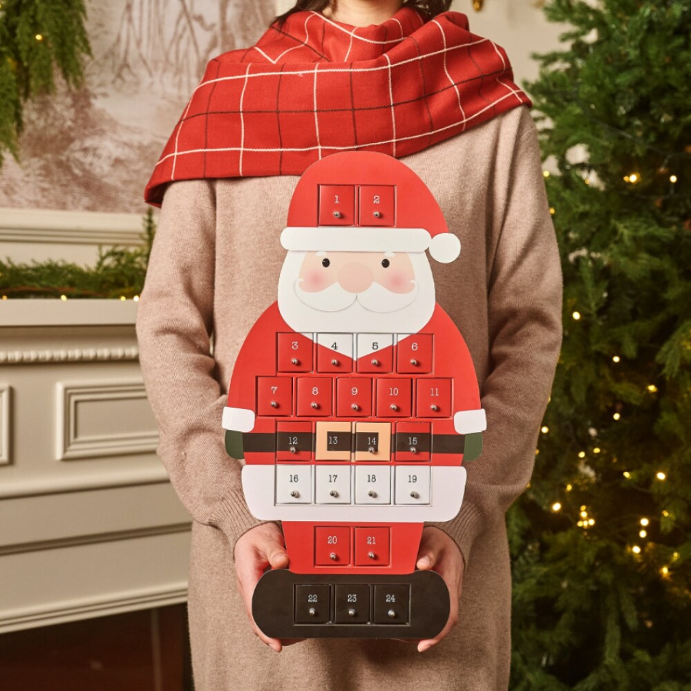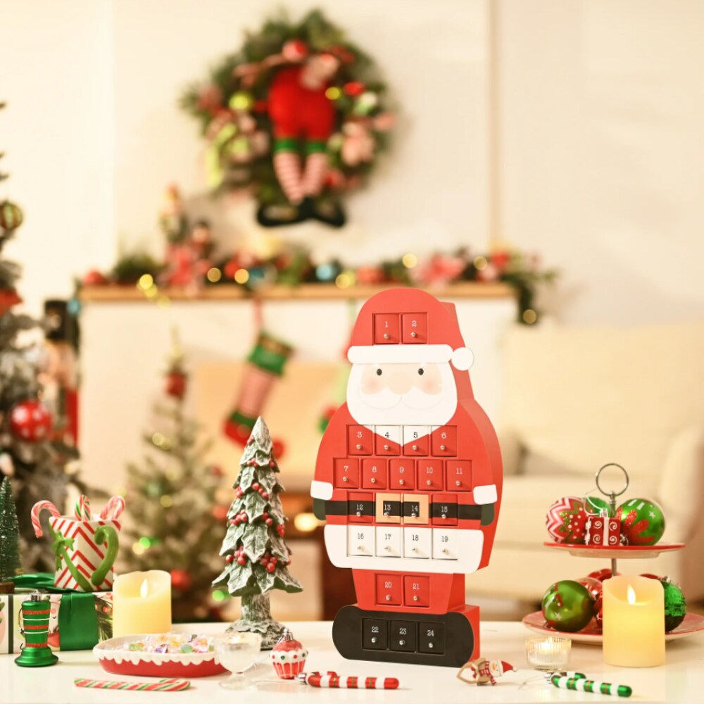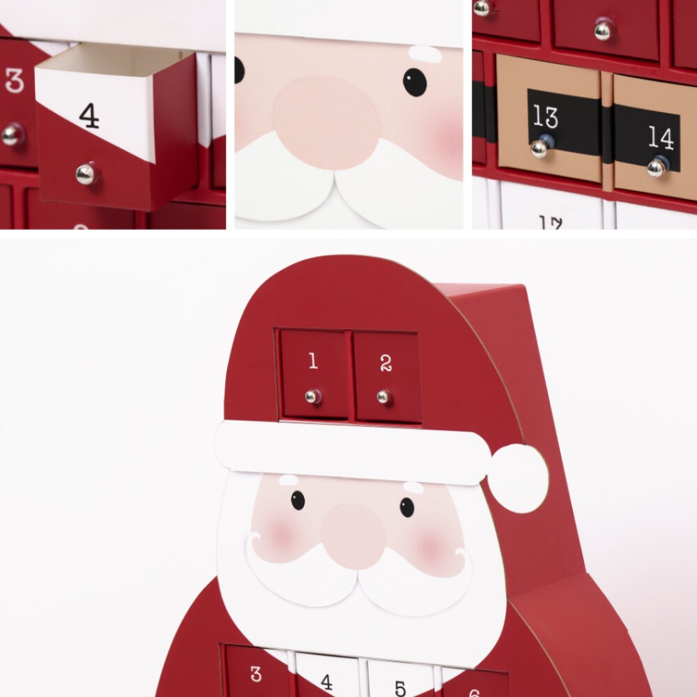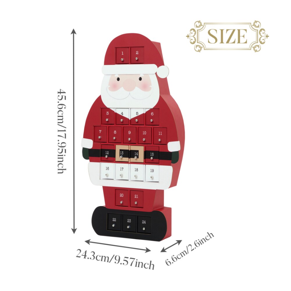 Santa Advent Calendar, 24 Drawer Christmas Countdown Calendar for Holiday Treats, Toys & Surprises