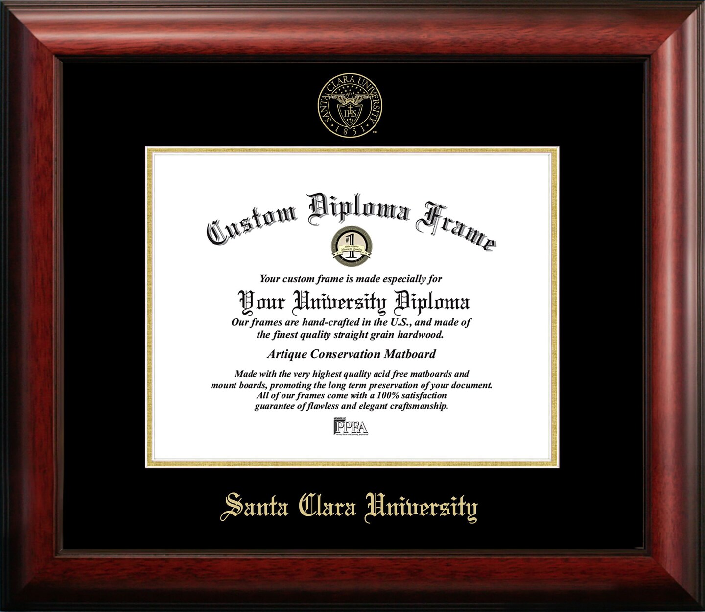 Santa Clara University 10w x 8h Gold Embossed Diploma Frame