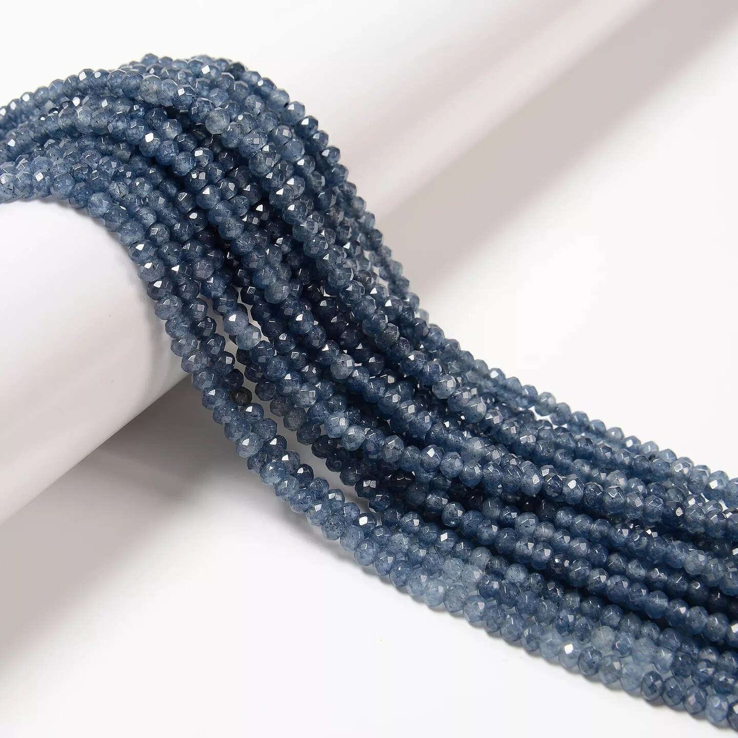 Sapphire Color Dyed Jade Faceted Rondelle Beads Size 3x4mm 14'' Strand