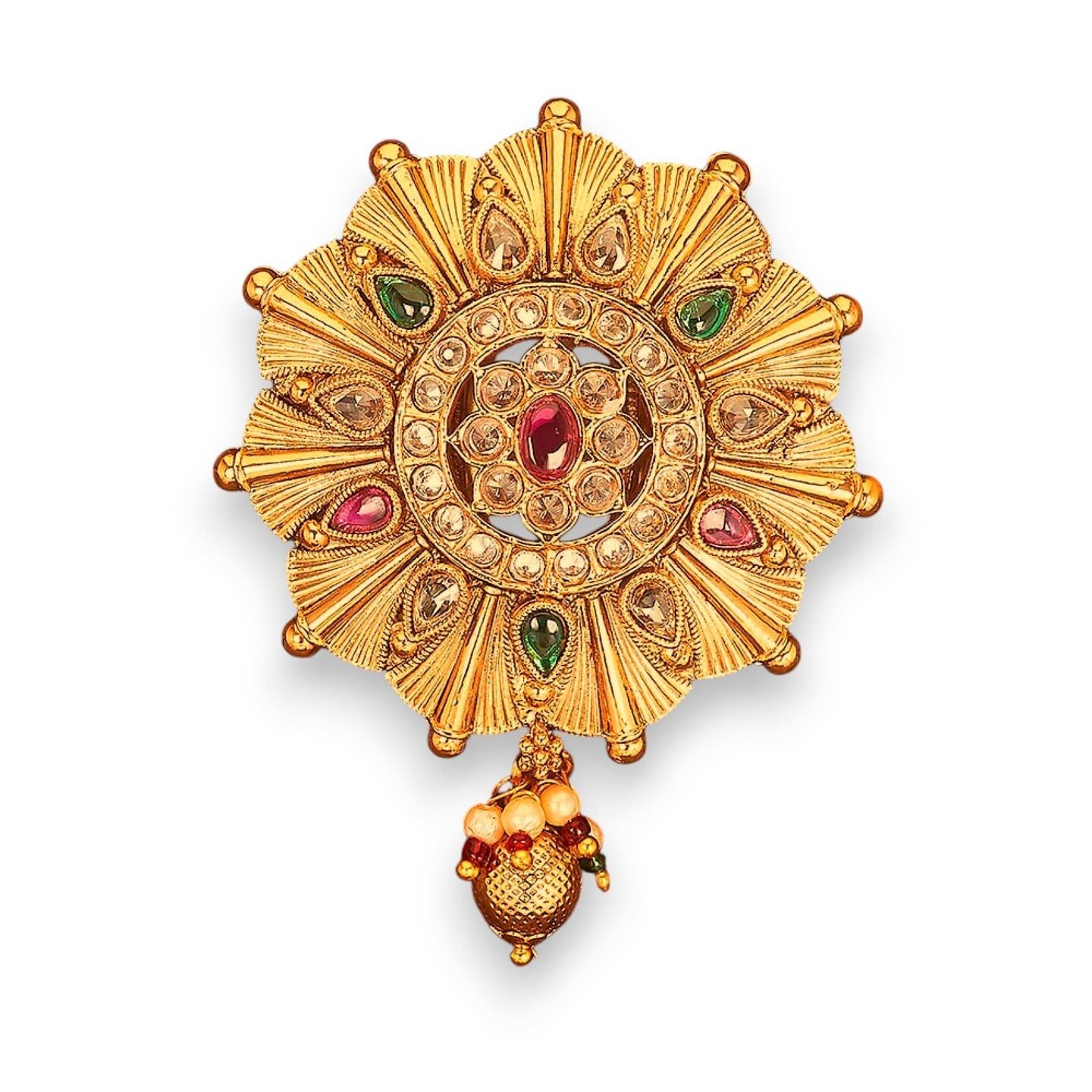 Sari Brooch for Indian Saree Traditional Kundan Design Bollywood Jewelry Brooch for Women Bridal Golden Brooches Pins Scarf Dupatta Dress Accessories for Wedding Gift (2.5 Inches)