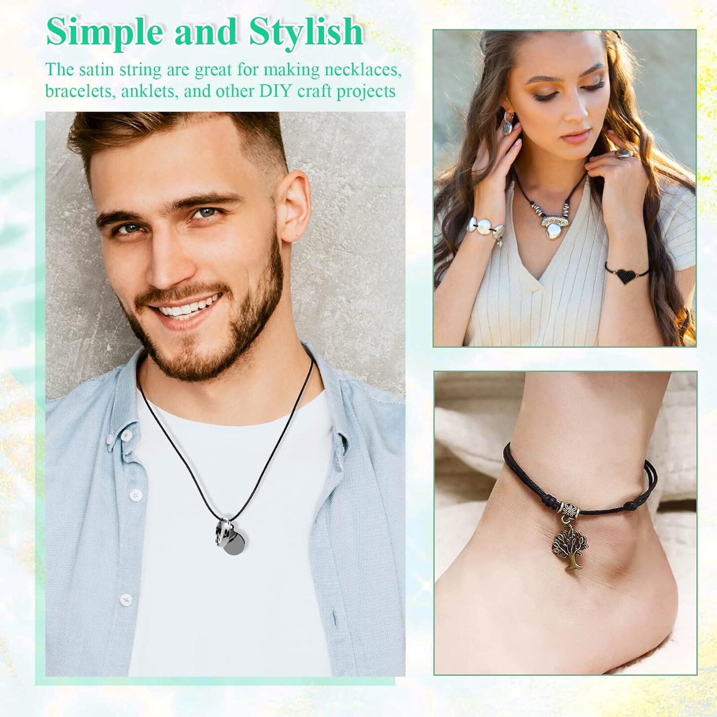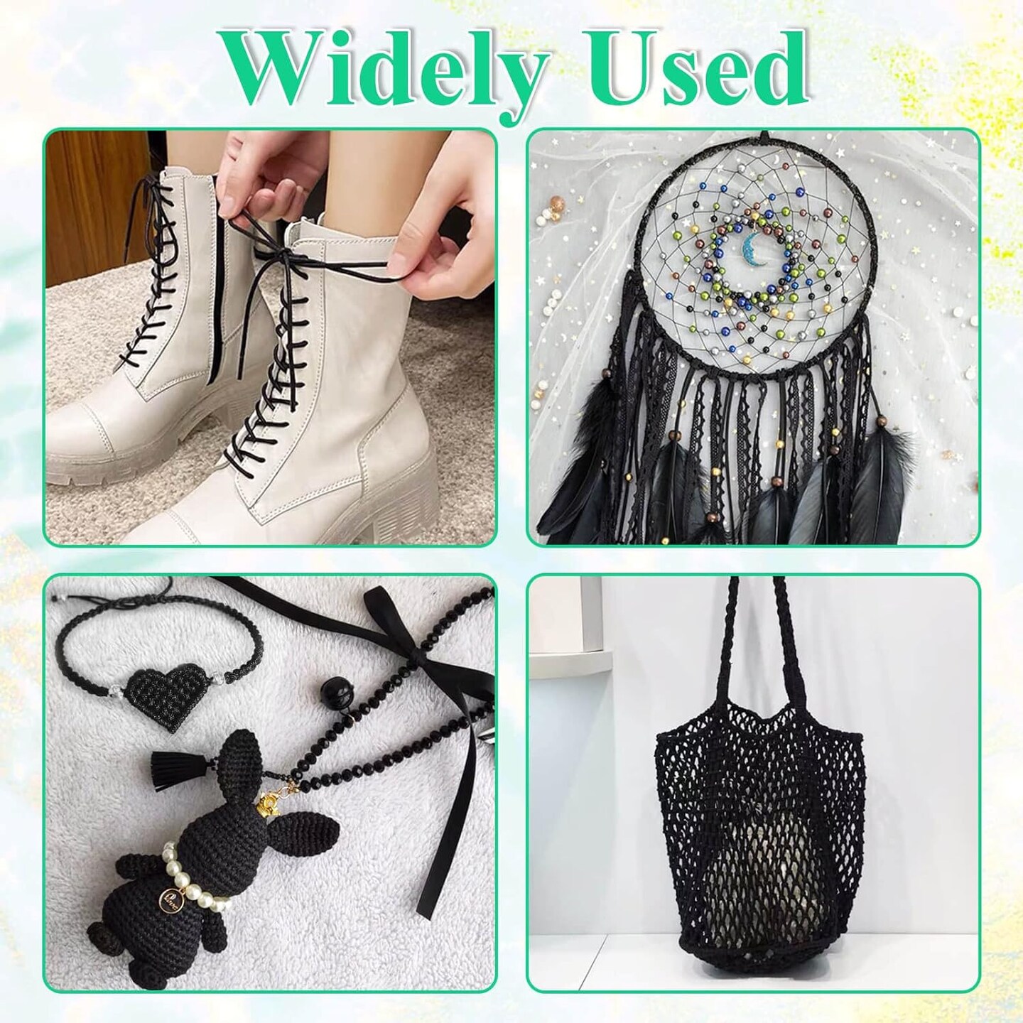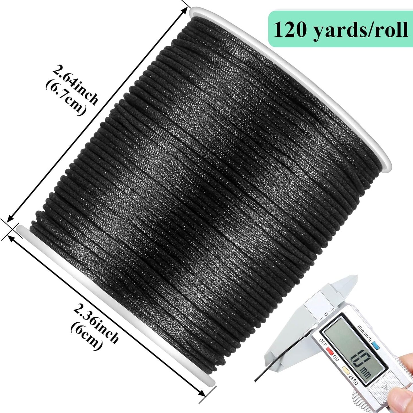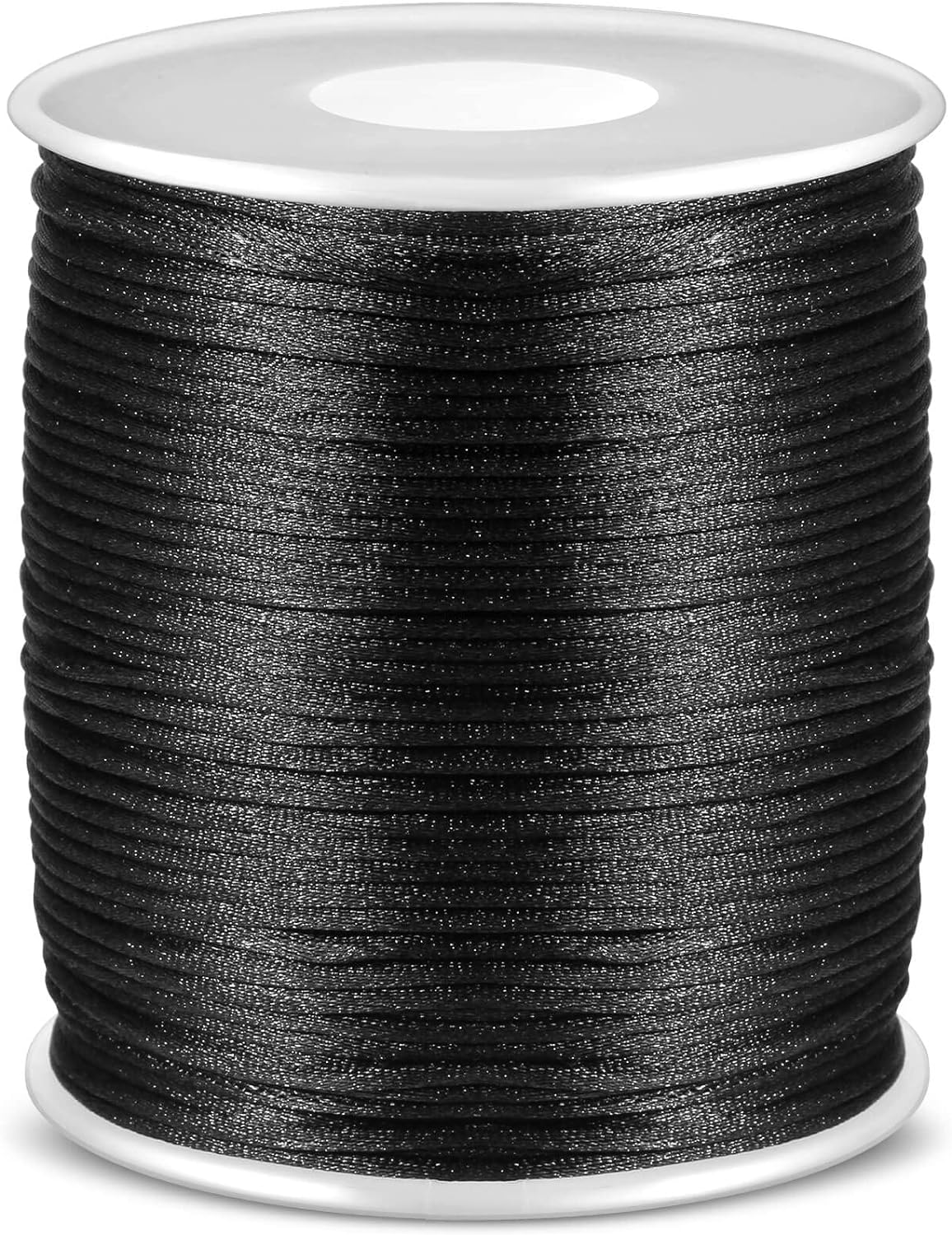 Satin Rattail Cord, Black Nylon Cord Silky Trim Beading String for Braided Bracelets, Pendants Necklace, Macrame Keychains, Lanyards, Drawstring Bags, Jewelry Making Crafts, Sewing Projects
