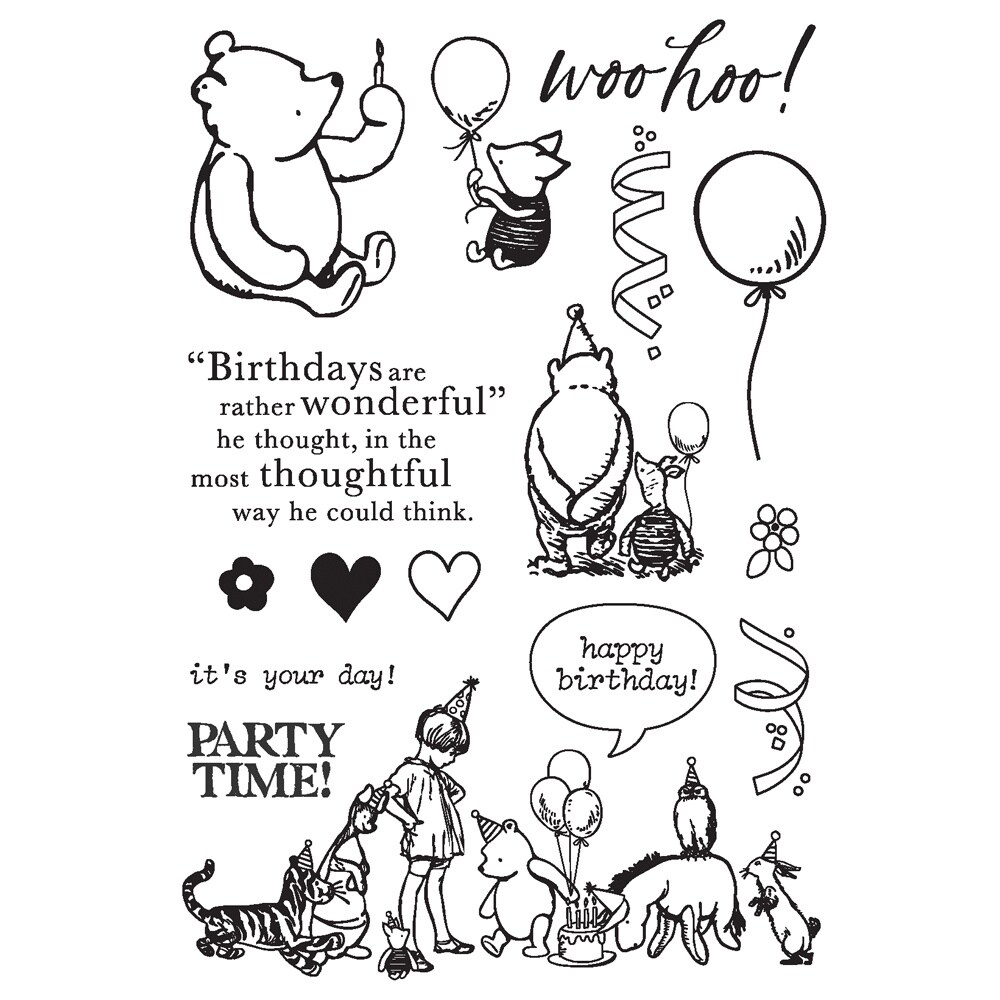 Say Cheese Classic Pooh Birthday Photopolymer Stamps-Woo Hoo!