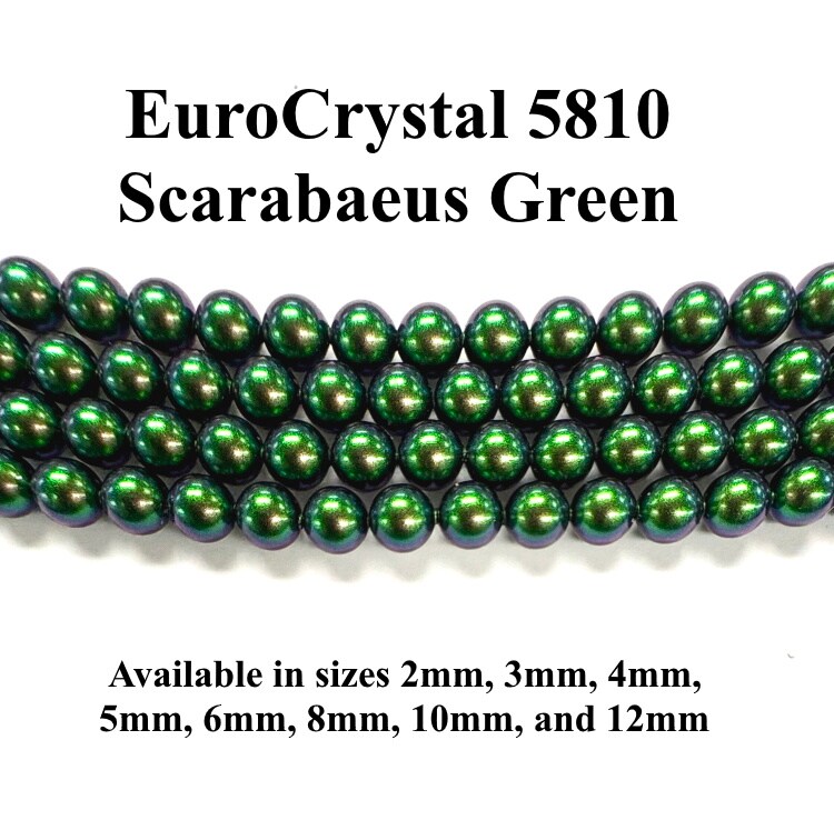 Scarabaeus Green EuroCrystal 5810 Round Pearls - 2mm, 3mm, 4mm, 5mm, 6mm, 8mm, 10mm, and 12mm - Strands - Made in Austria