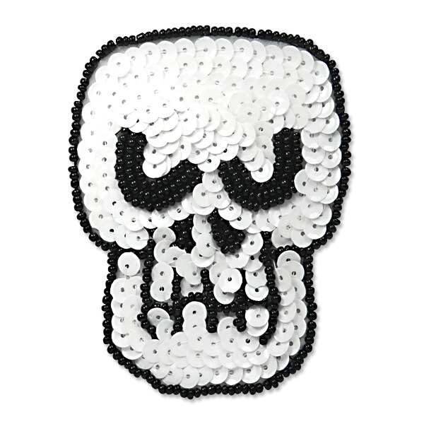Scary Skull Beaded Sequin Applique/Patch