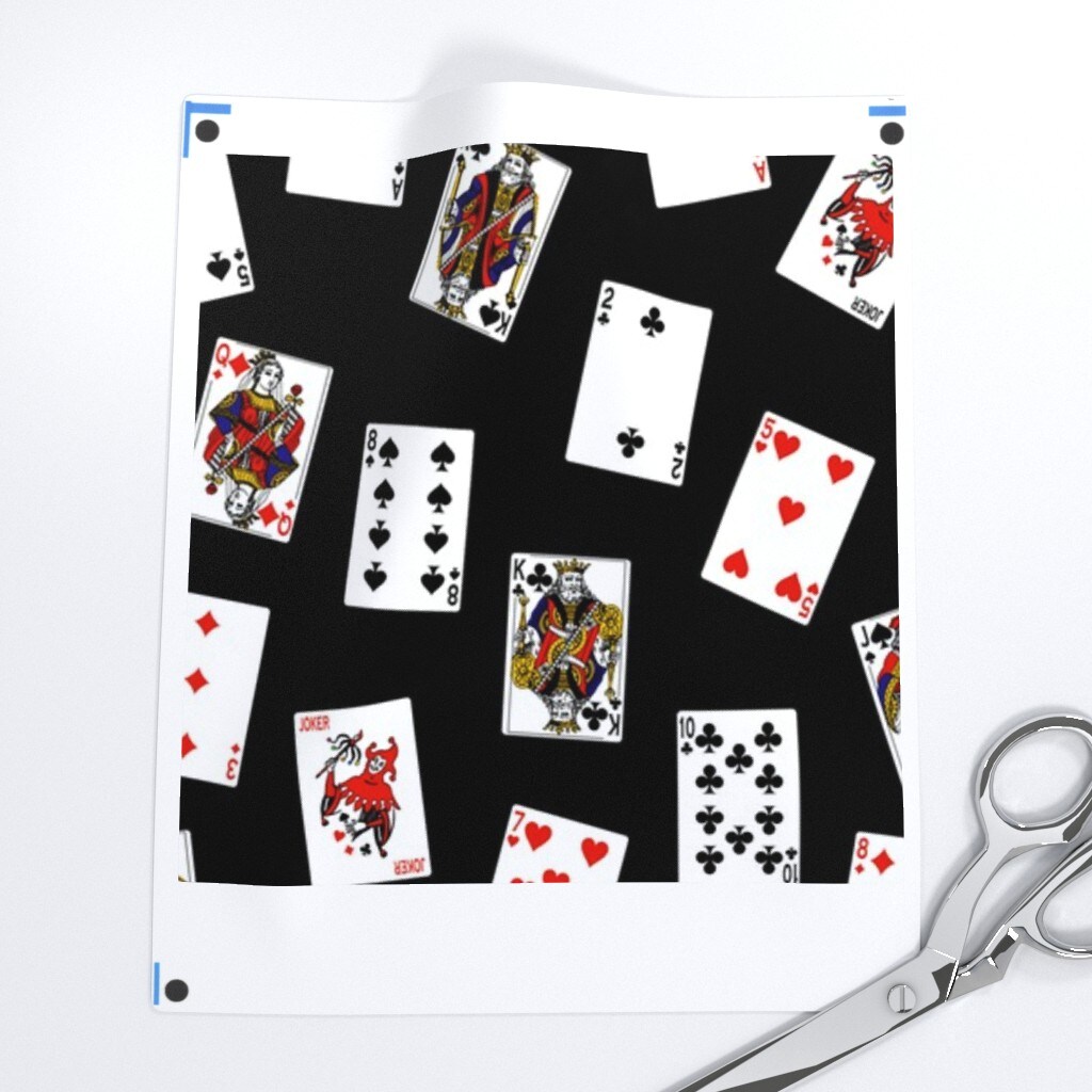 Scattered Playing Cards Black Deck Gambling Casino Masculine Game Room Custom Printed Fabric by Spoonflower Various Fabrics by the Yard or Fat Quarter