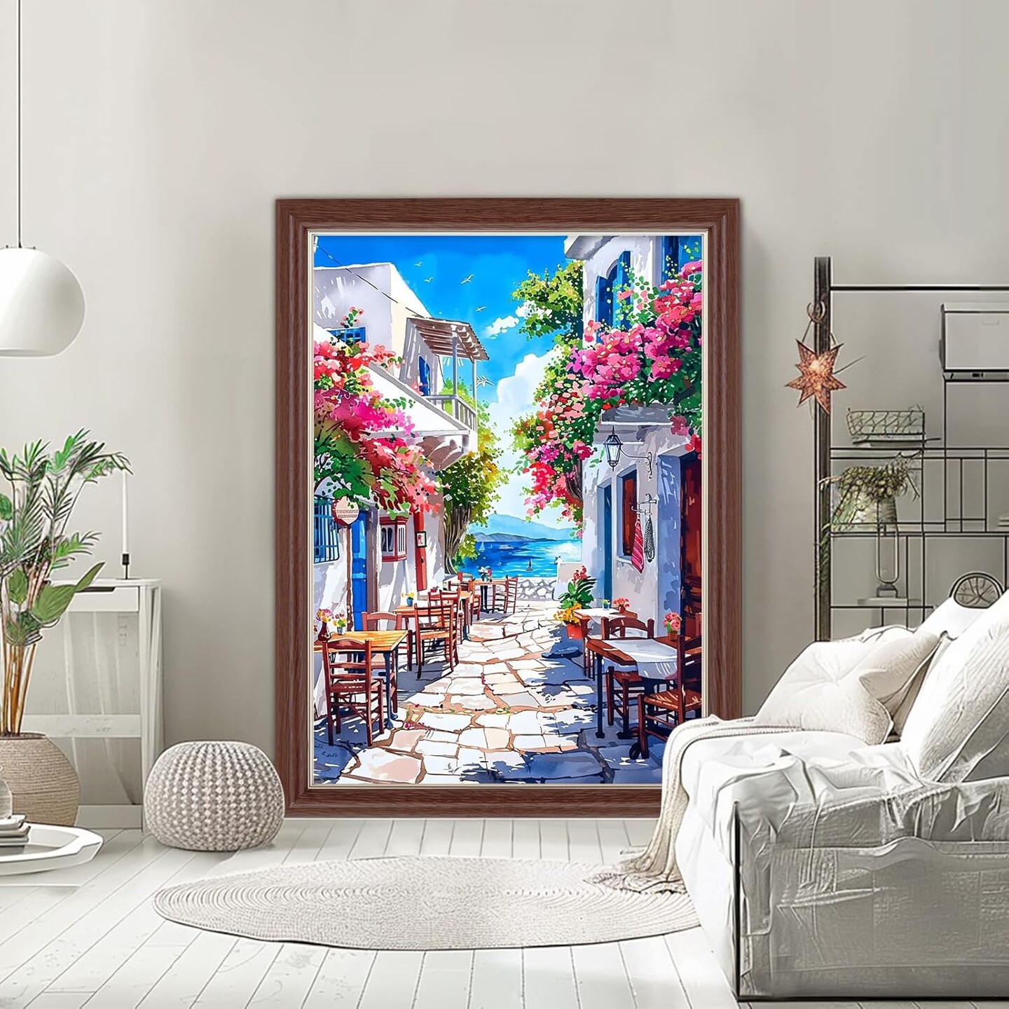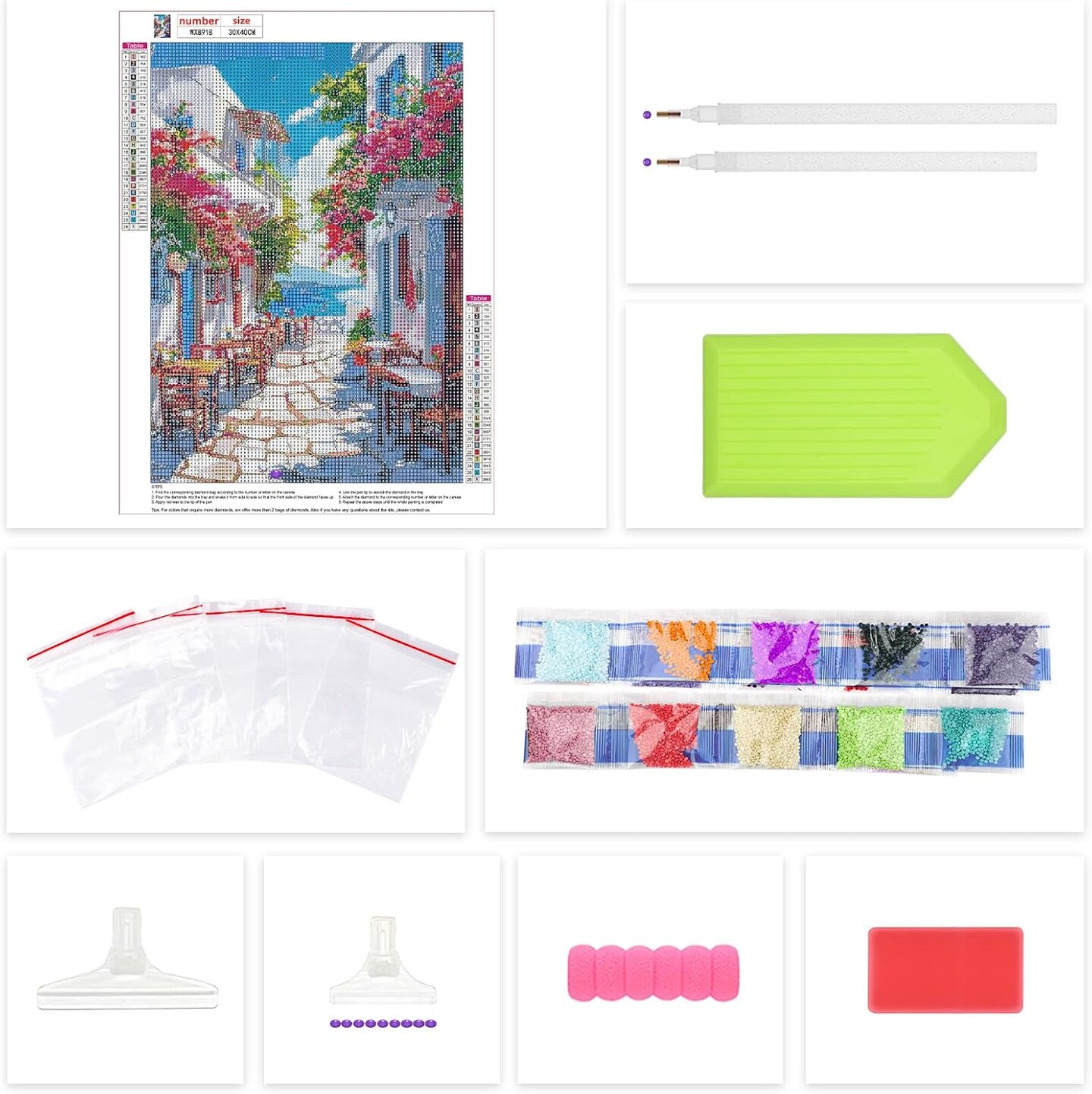Scenery Diamond Art Kits for Adults, Flower Street DIY Full Drill Diamond Painting Kits for Beginners, 5D Gem Art Crafts for Adults, Home Wall Decor 12x16 inch