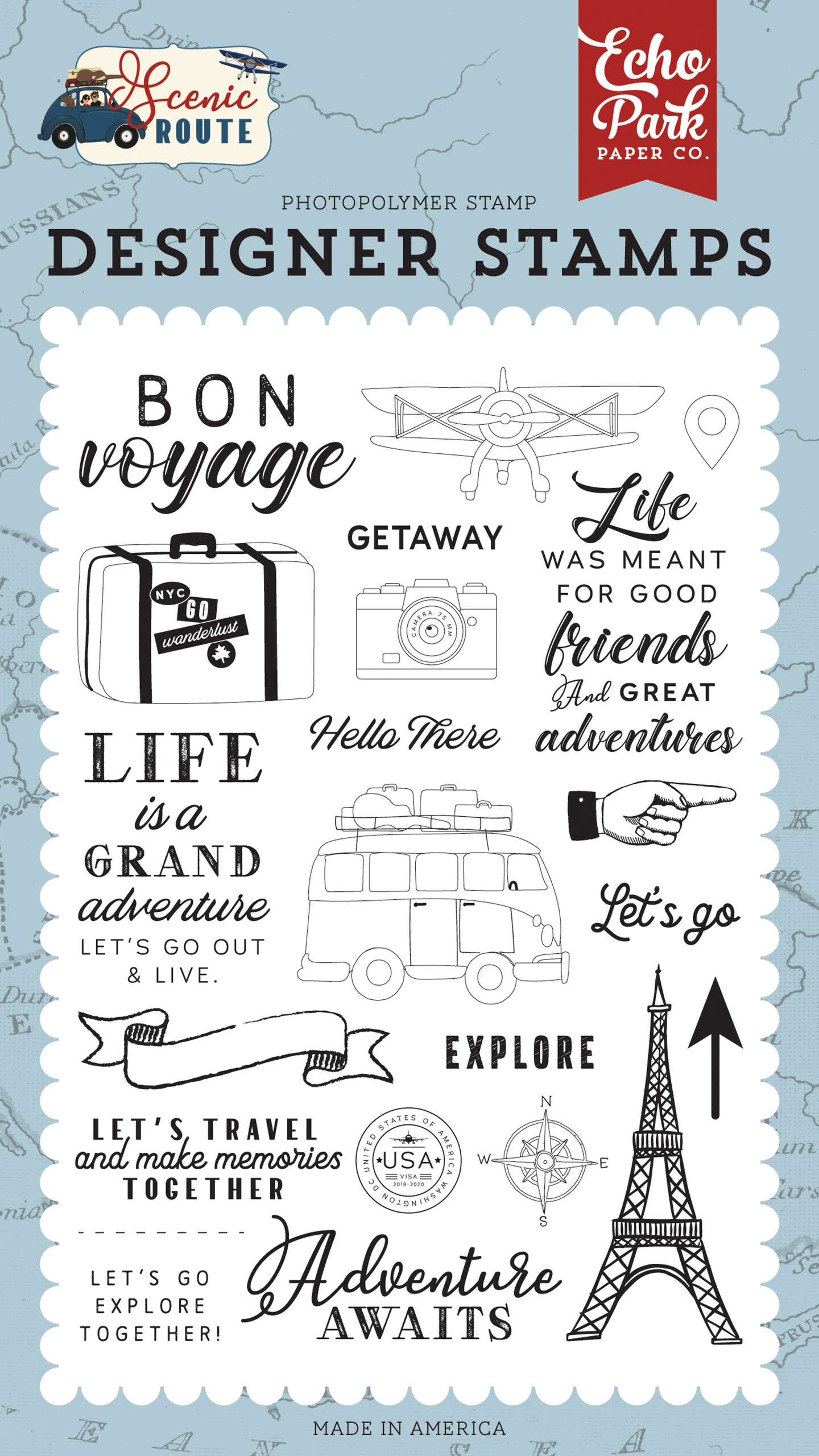 Scenic Route: Let's Go Travel Stamp Set