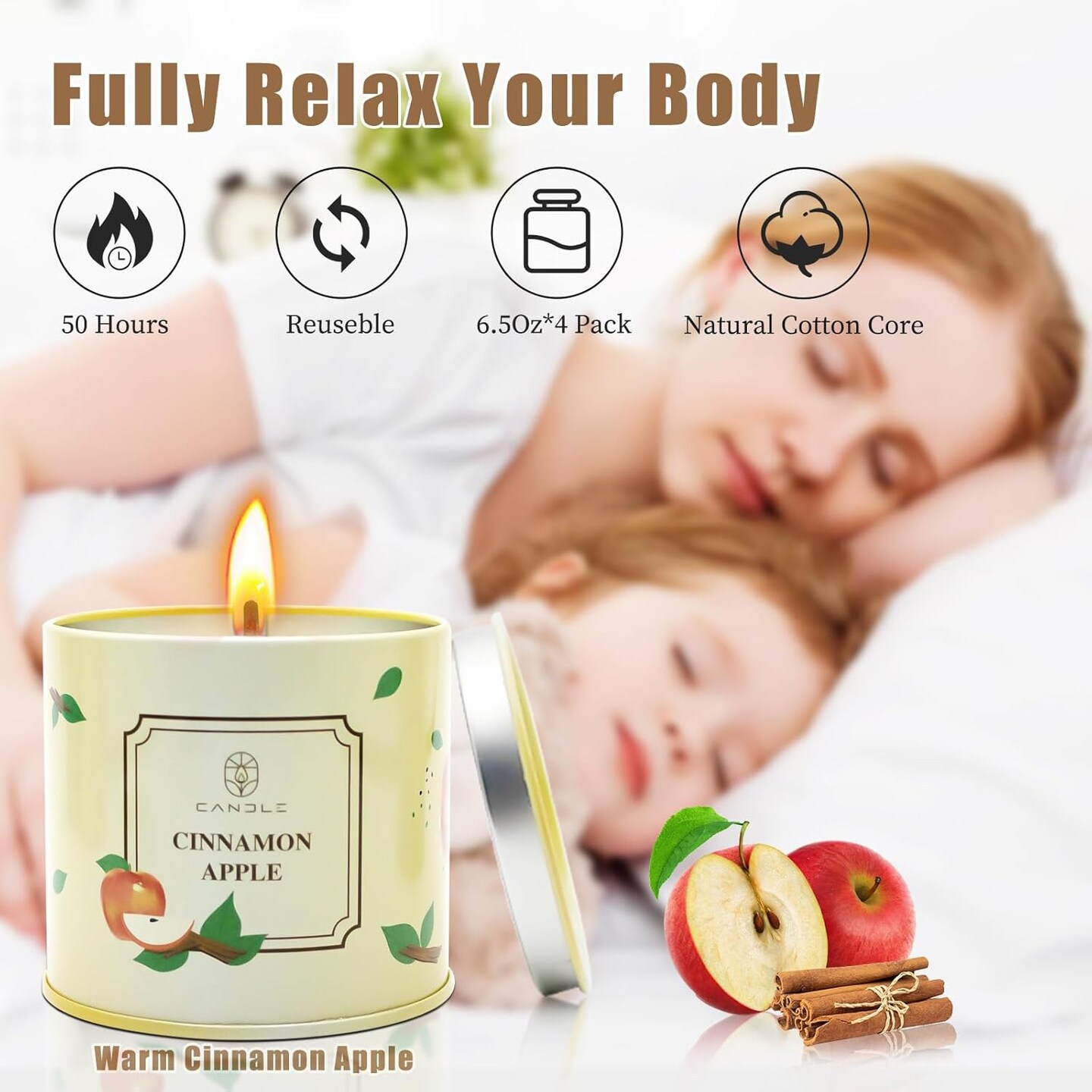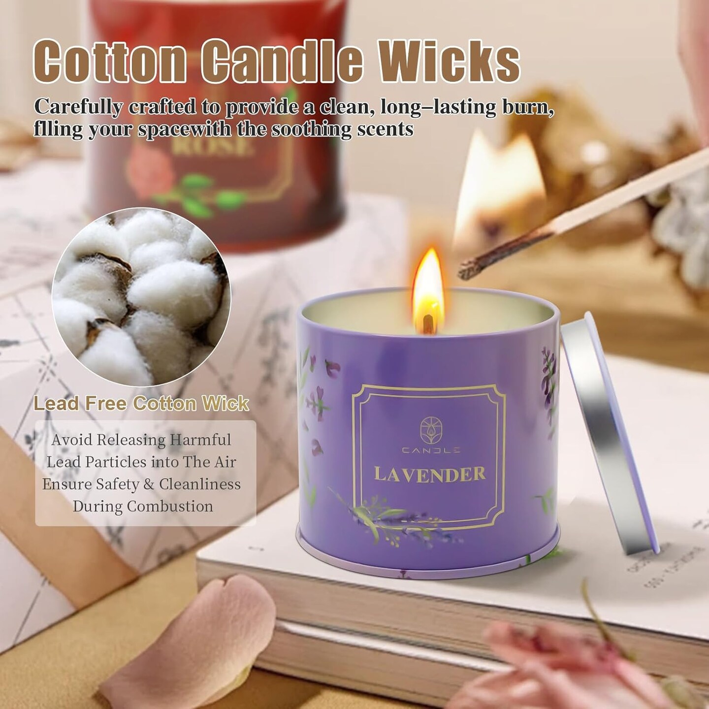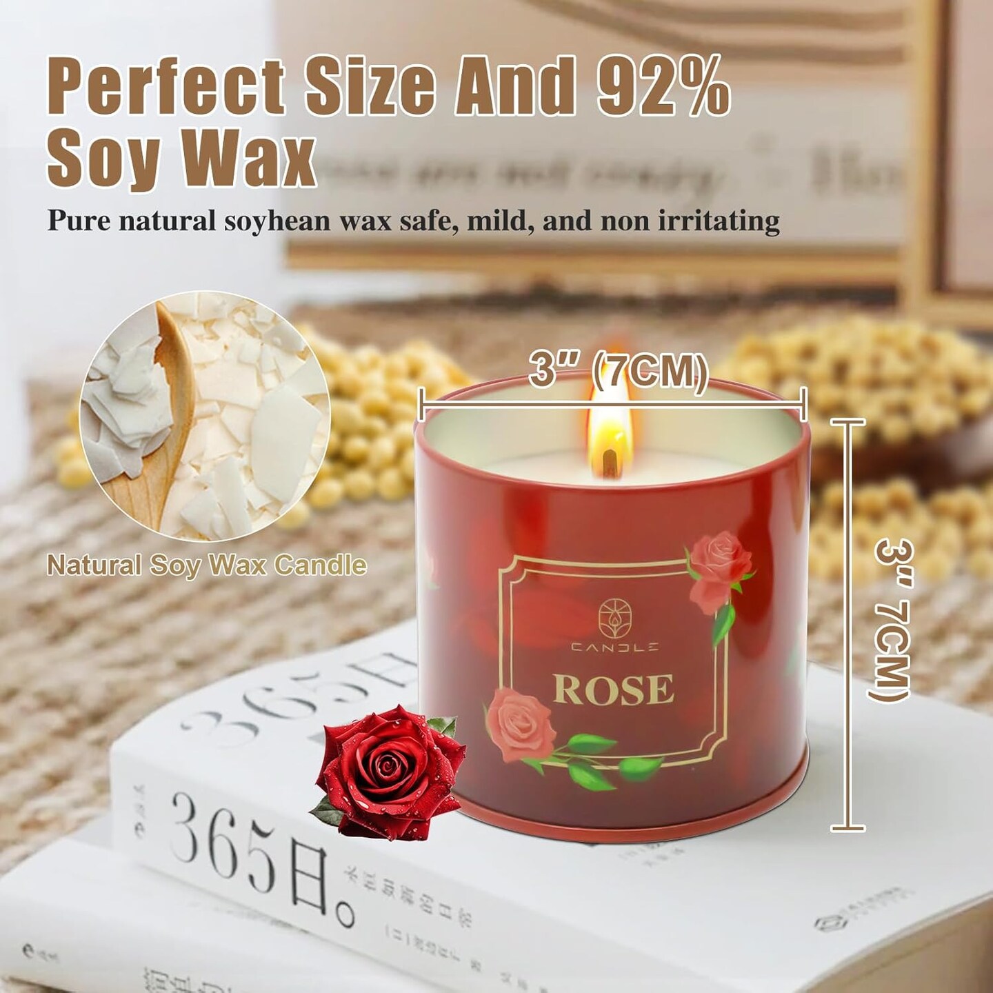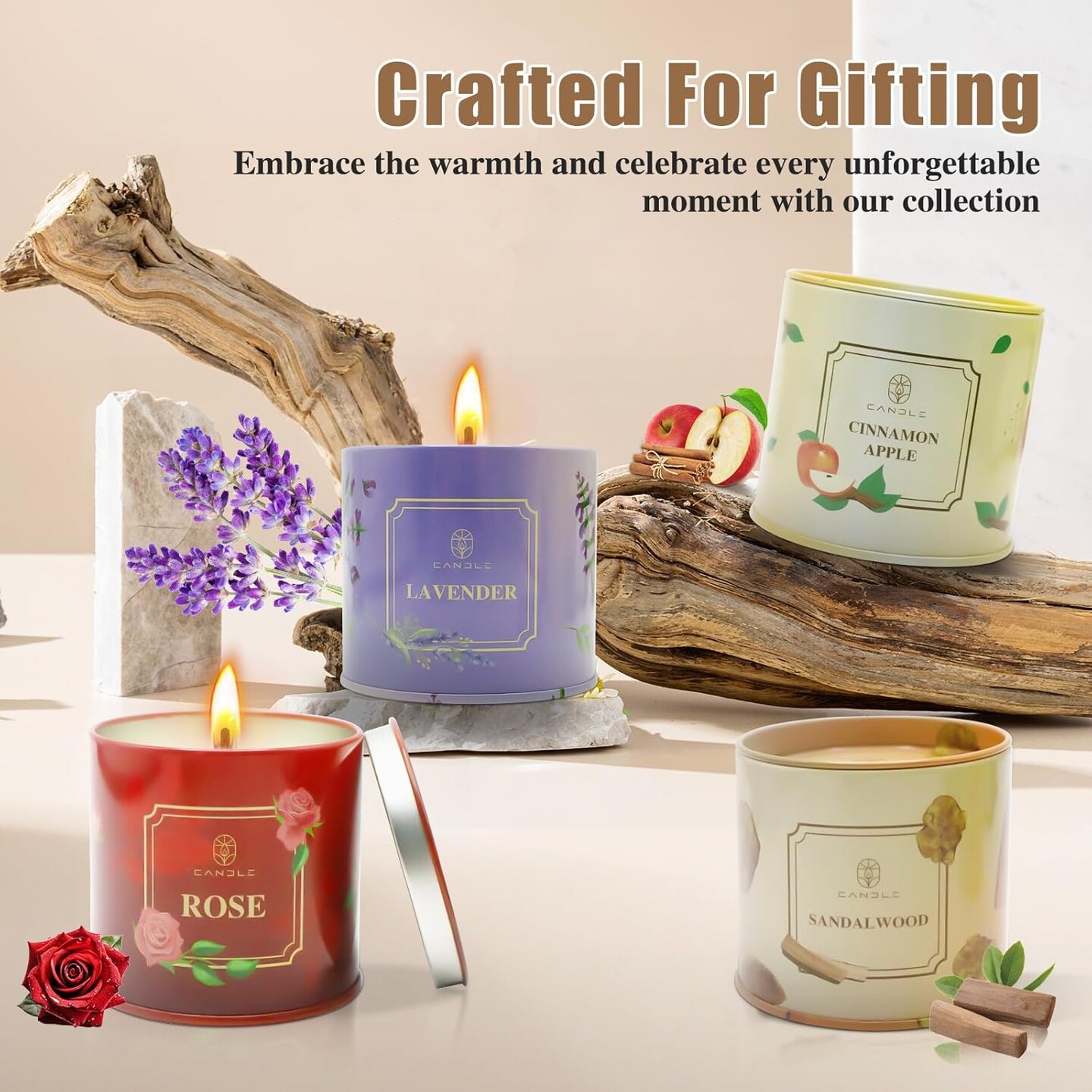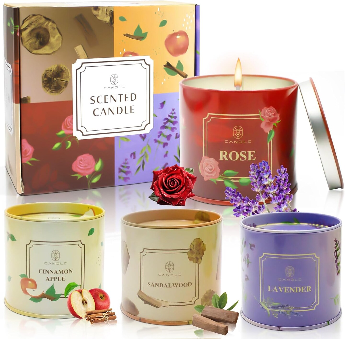 Scented Candles 4 Pack Soy Wax Long Lasting Rose Lavender Sandlawood Apple Fragrance Gifts for Women Mother's Day Thanksgiving Day Christmas Day