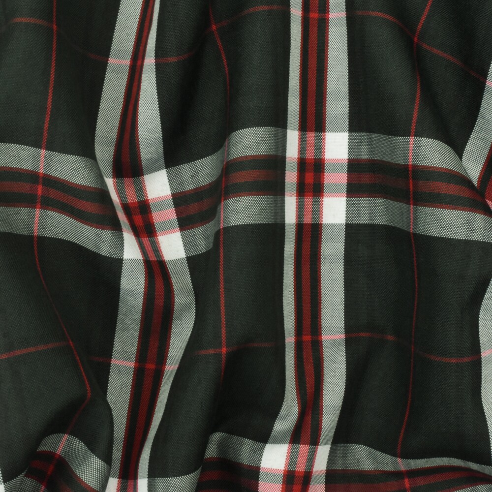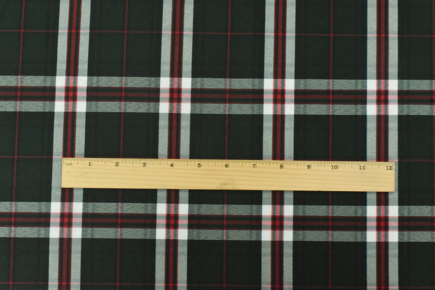 School Green-White-Multi Plaid Poly Madras Woven Fabric By the Yard