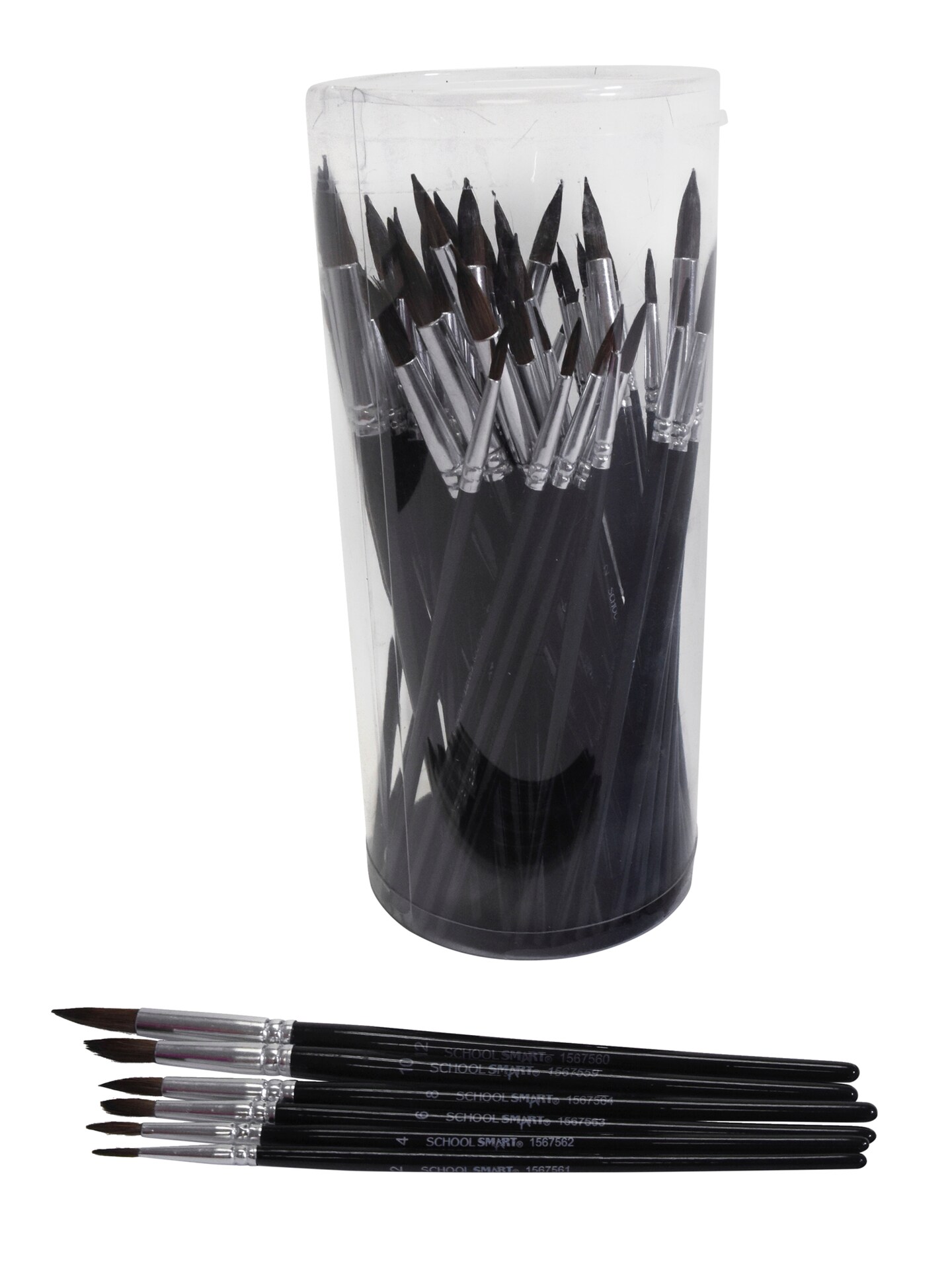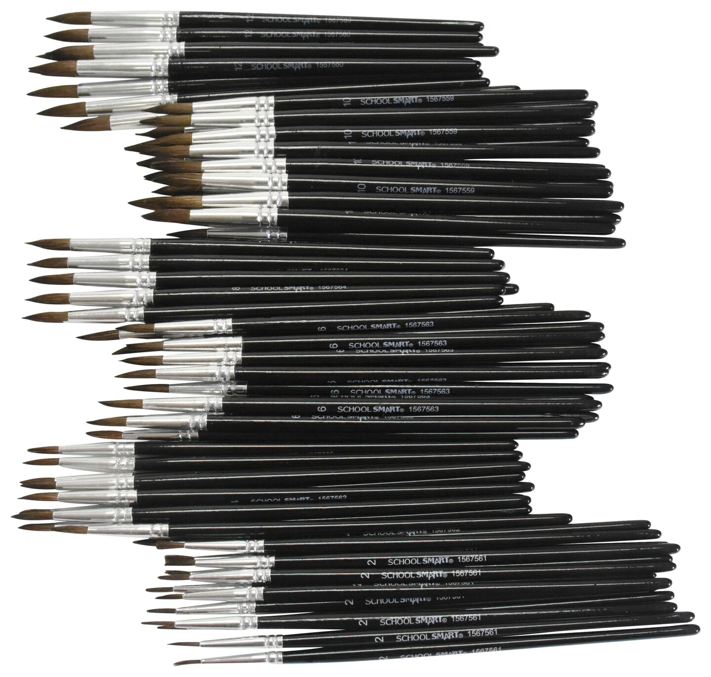 School Smart Synthetic Watercolor Paint Brushes, Assorted Sizes, Set of 72