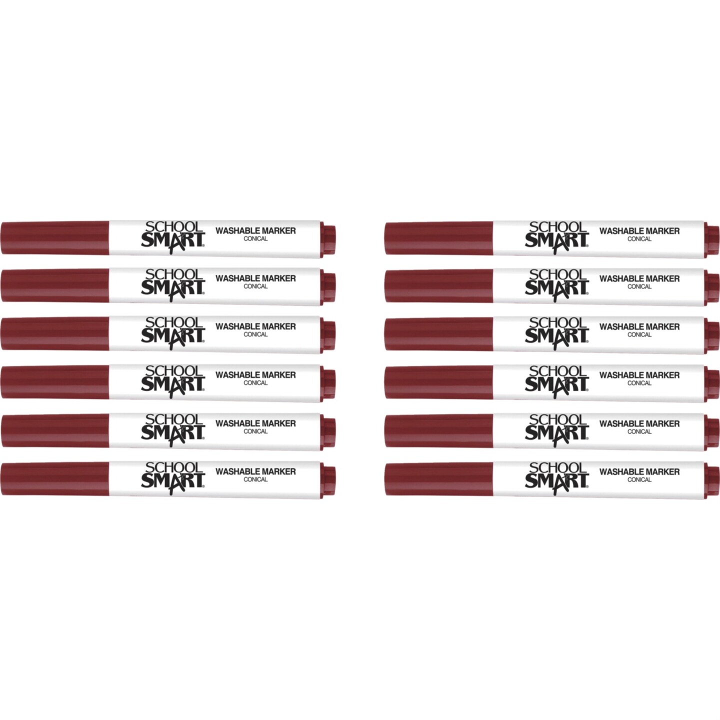 School Smart Washable Art Markers, Conical Tip, Red, Pack of 12