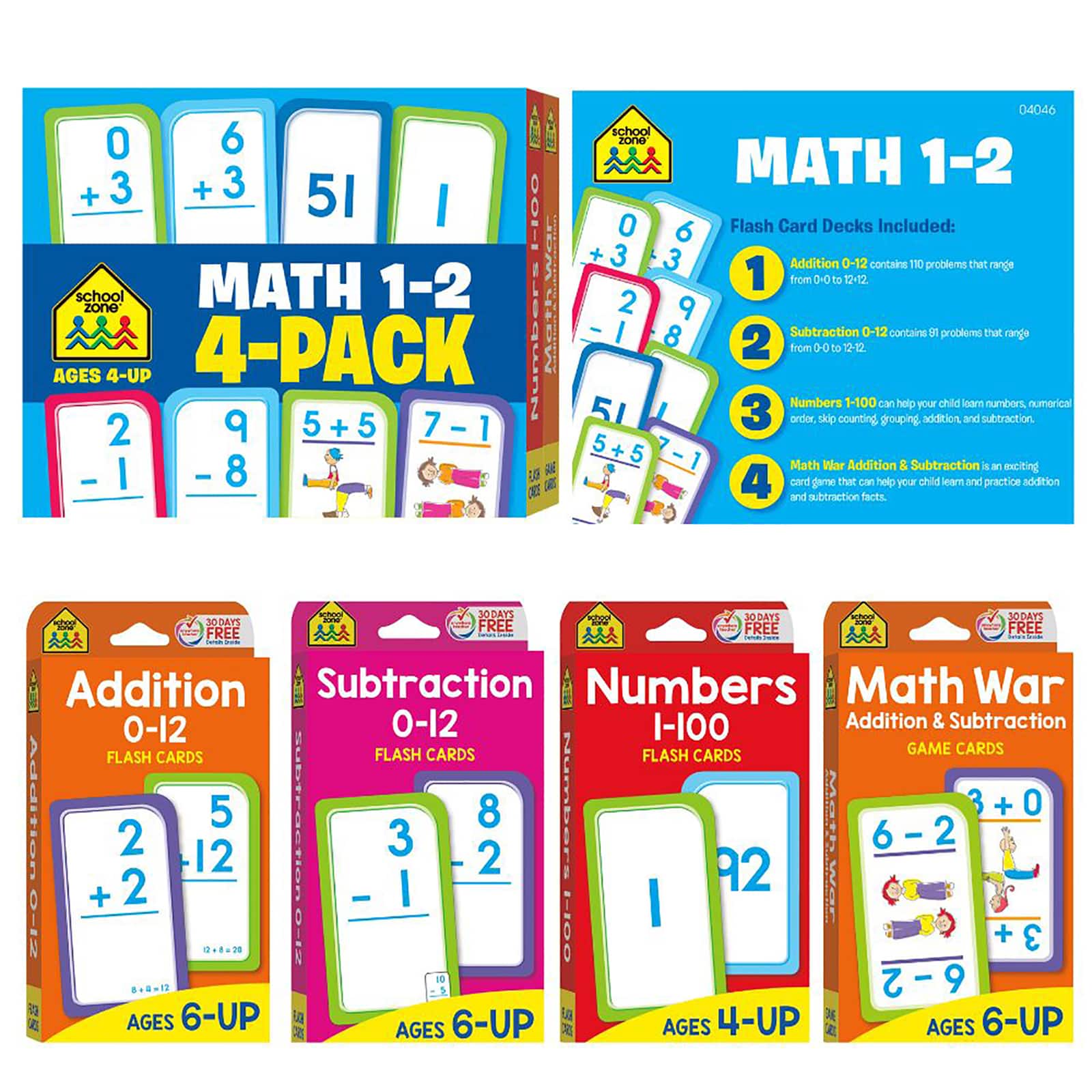 School Zone® Math 1-2 Flash Card, 4 Pack