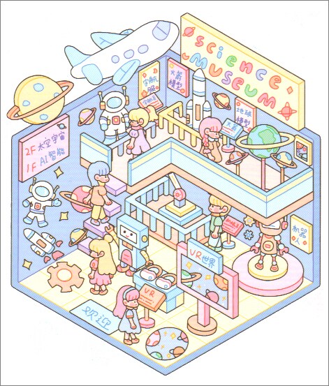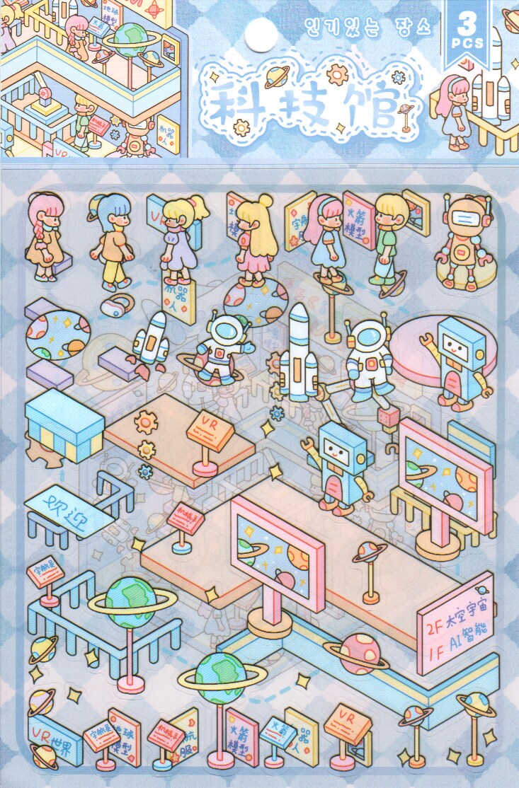 Science Museum Sticker Scene, Isometric Room Stickers, Adorabilities