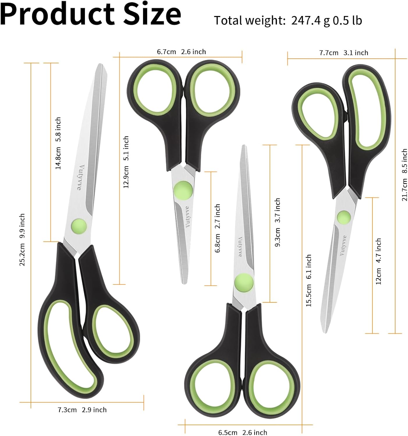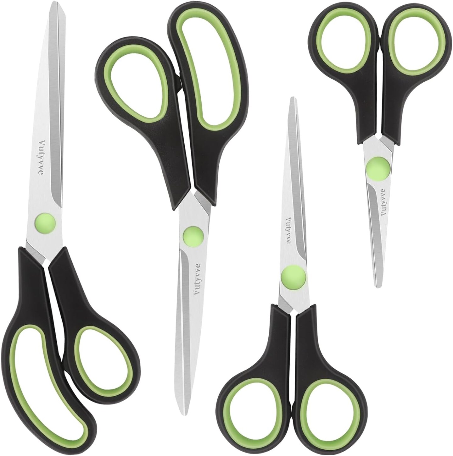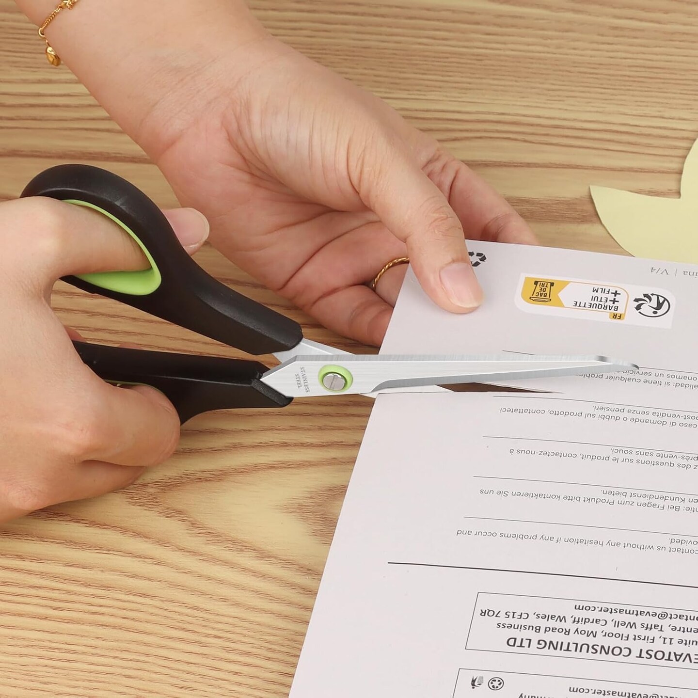 Scissors, Stainless Steel Blades Soft Grip for Home, School, Office. Black and Green, 4