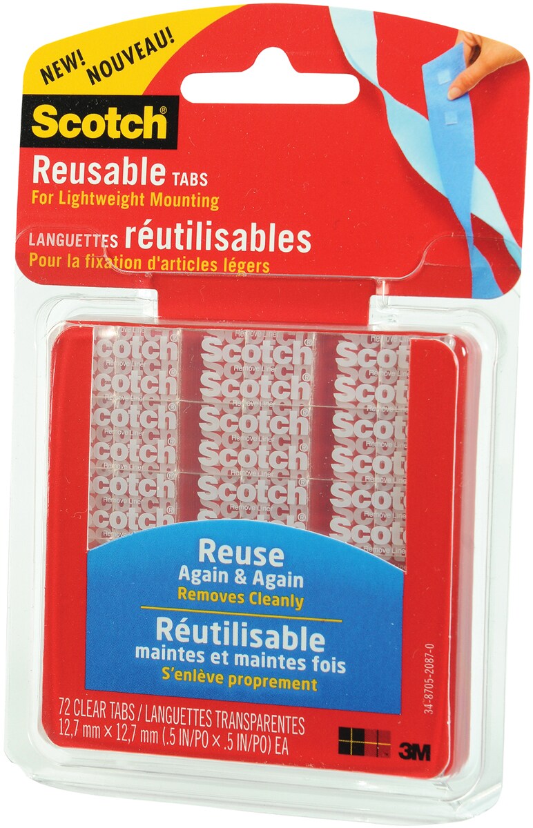 Scotch Reusable Tabs-Clear .5" 72/Pkg