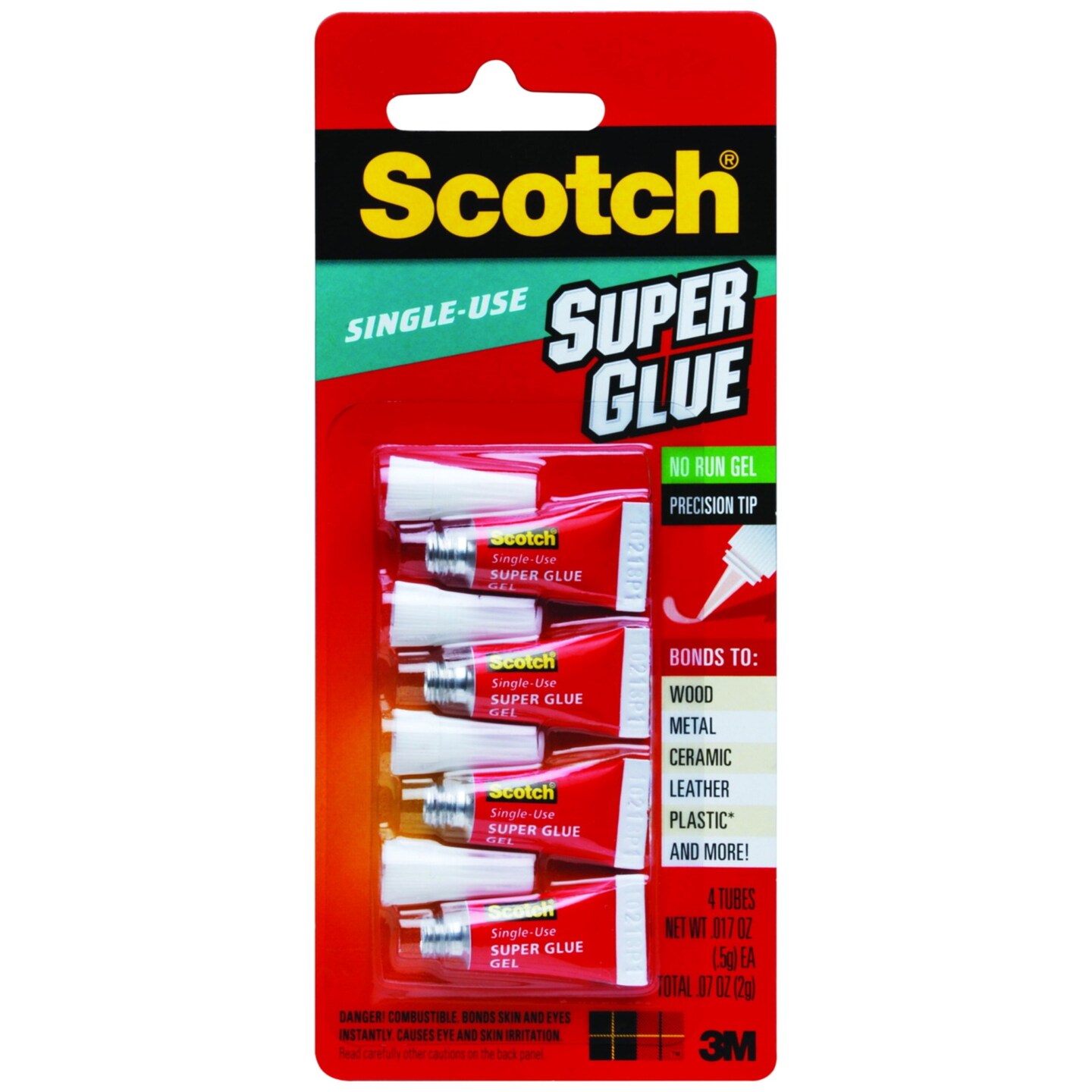 Scotch Super Glue Gel, Single Use, Pack of 4