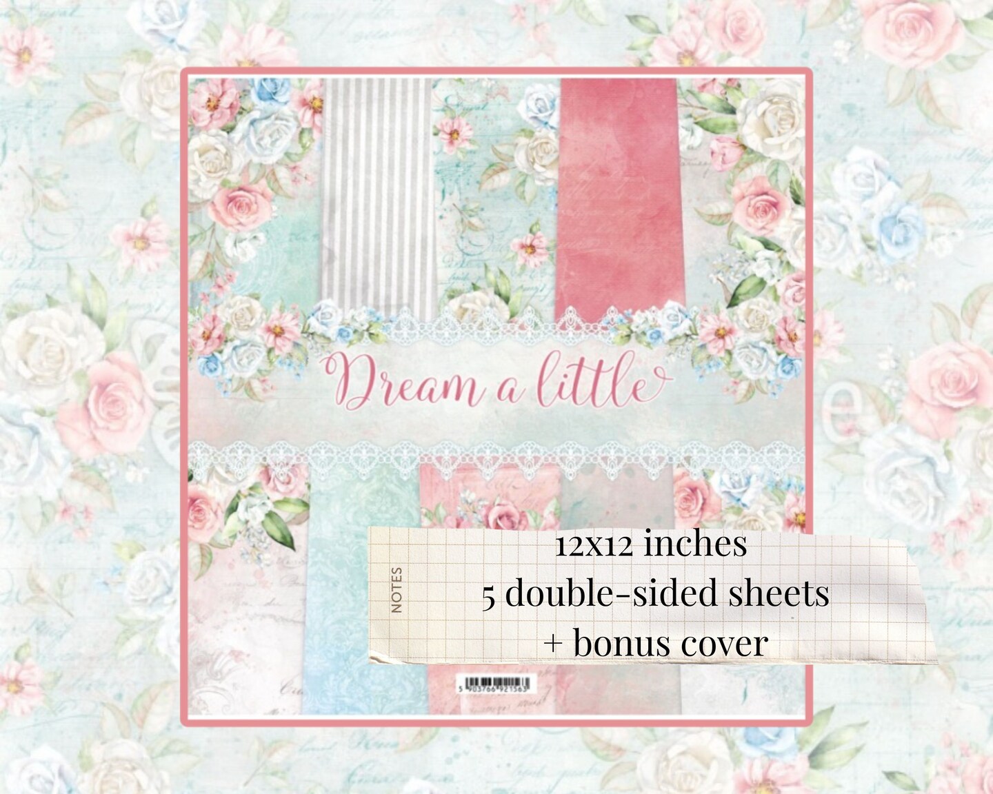 ScrapAndMe “Dream a Little” 12x12 Scrapbook Paper Pack | 5 Double-Sided Sheets | Romantic Pastel Floral Designs