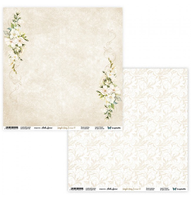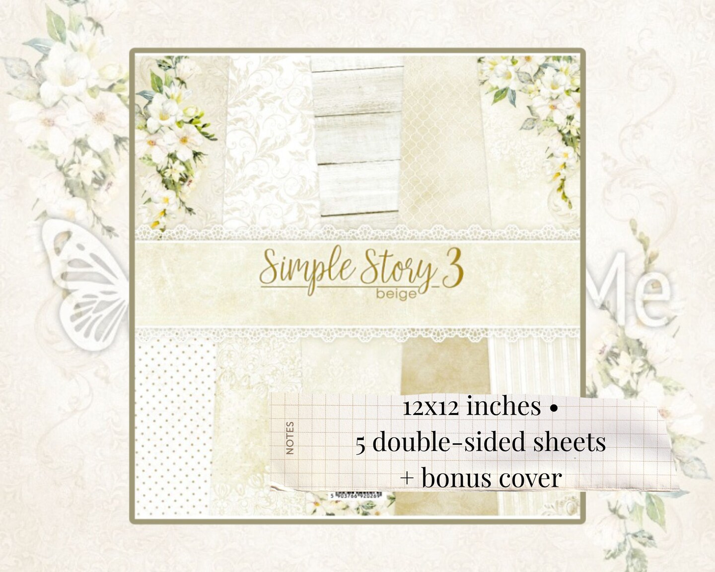 ScrapAndMe “Simple Story 3 – Beige” 12x12 Scrapbook Paper Pack | 5 Double-Sided Sheets | Neutral Floral Designs