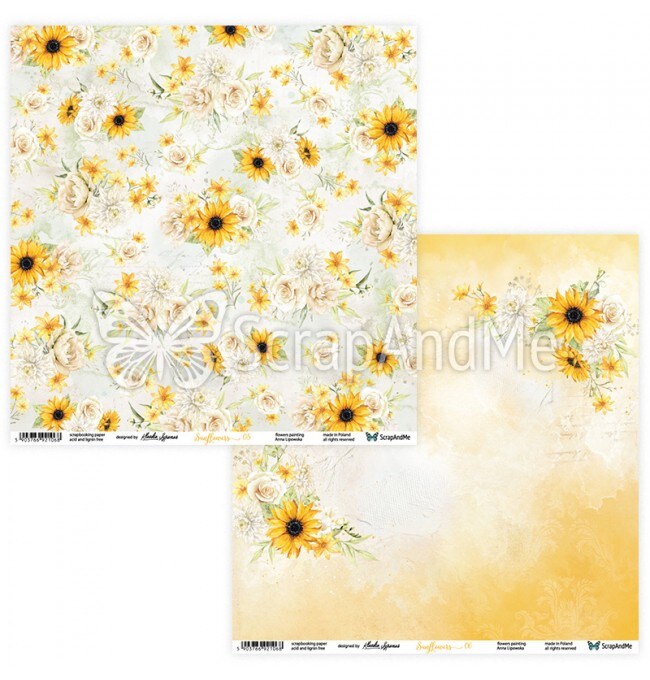 ScrapAndMe “Sunflowers” 12x12 Scrapbook Paper Pack | 5 Double-Sided Sheets | Rustic Floral Summer Designs
