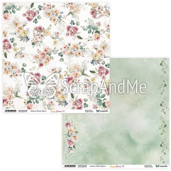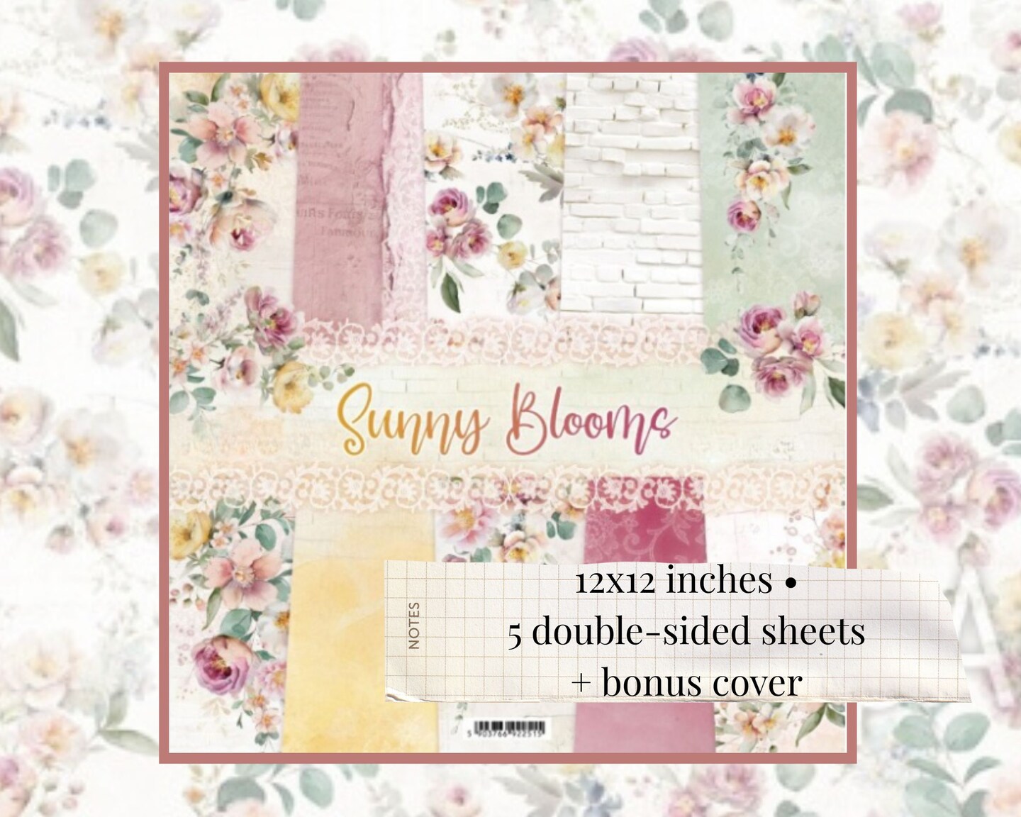 ScrapAndMe “Sunny Blooms” 12x12 Scrapbook Paper Pack | 5 Double-Sided Sheets | Romantic Pastel Floral Designs