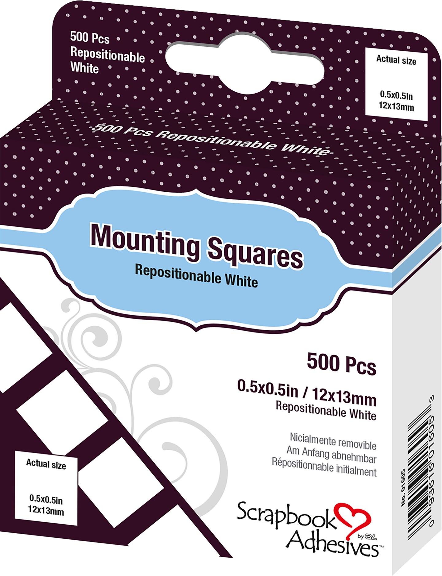 Scrapbook Adhesives Mounting Squares 500/Pkg-Repositionable, White, .5"X.5"