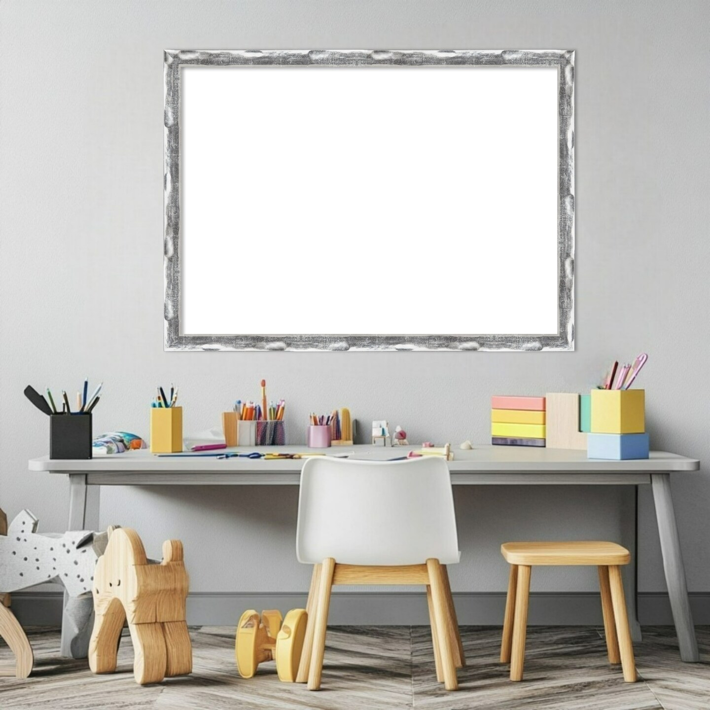 Scratched Wave Chrome Framed Dry Erase Magnetic Board