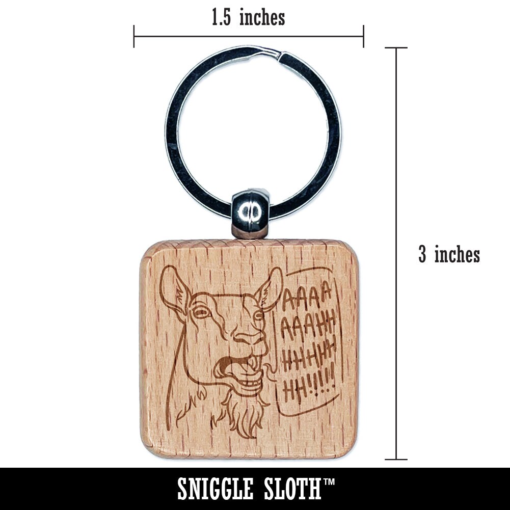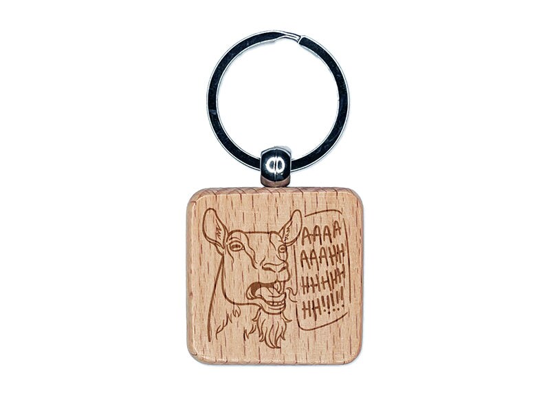 Screaming Goat Engraved Wood Square Keychain Tag Charm