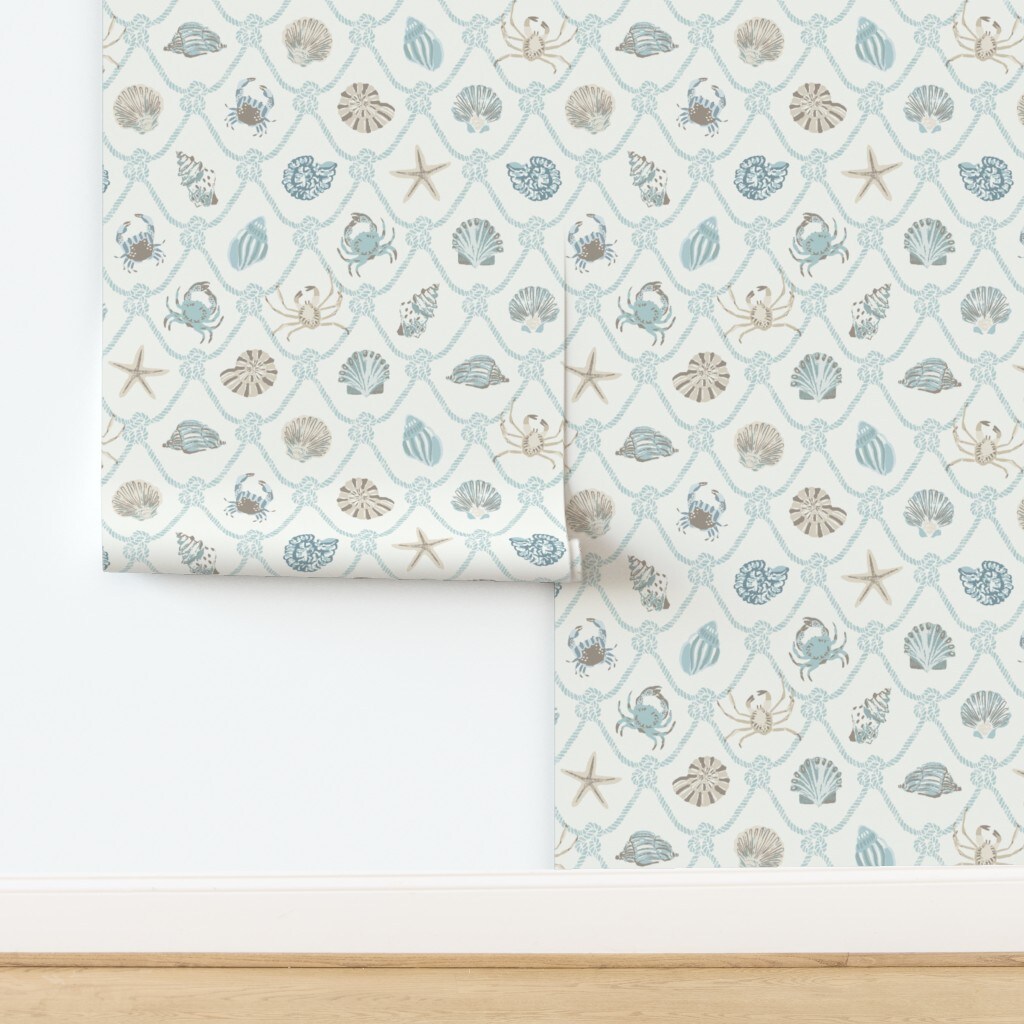 Sea Creatures Blue Seashells Starfish Crabs Coastal Coral Ocean Beach Custom Removable Wallpaper by Spoonflower Peel & Stick Wallpaper 2FT Wide