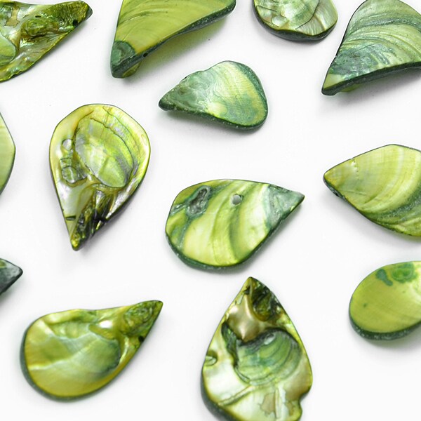 Sea Shell Hand Crafted Fan/Drop Shape Beads/Pendants Olive