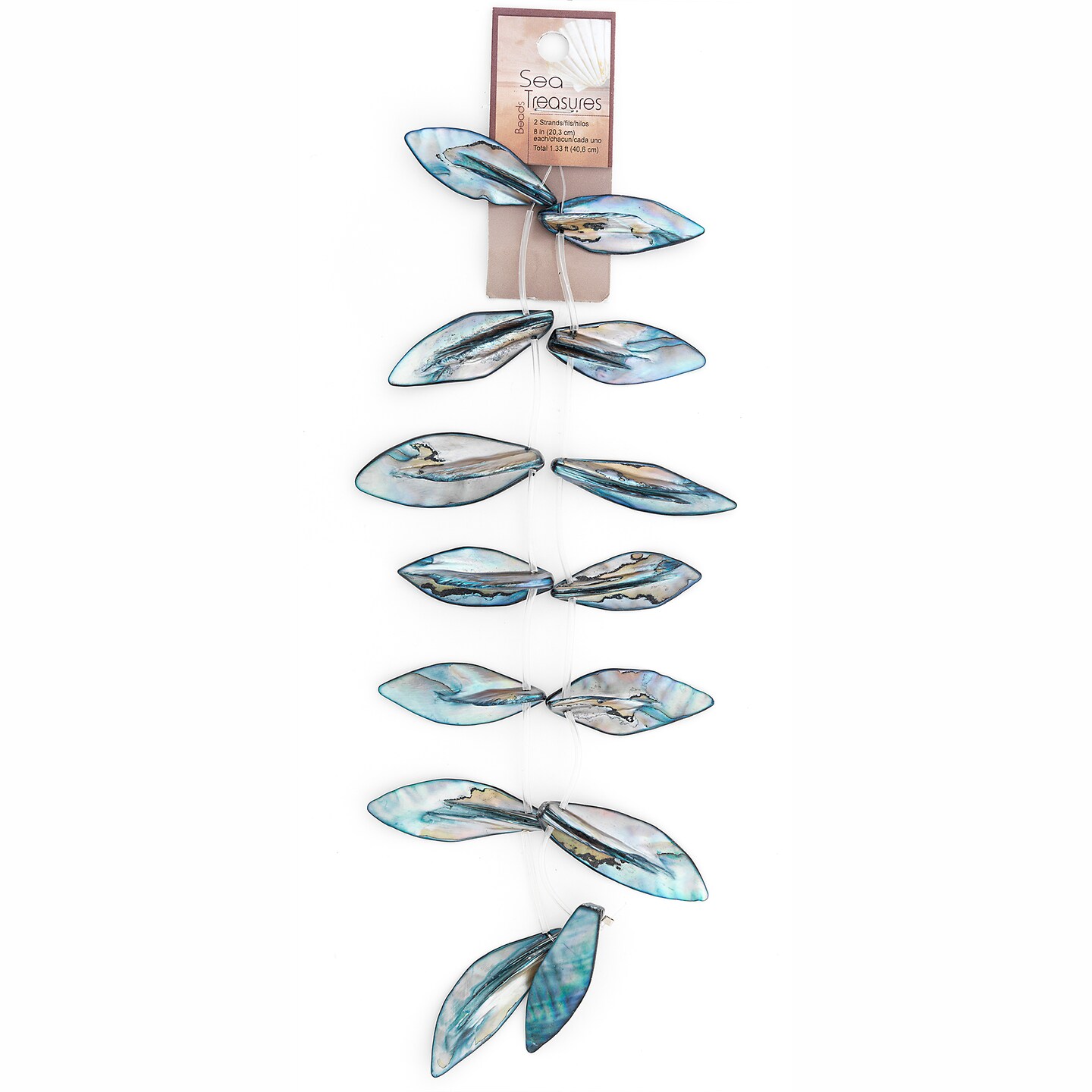 Sea Shell Hand Crafted Leaf Shape 14 Beads (15 x 45mm) -Blu