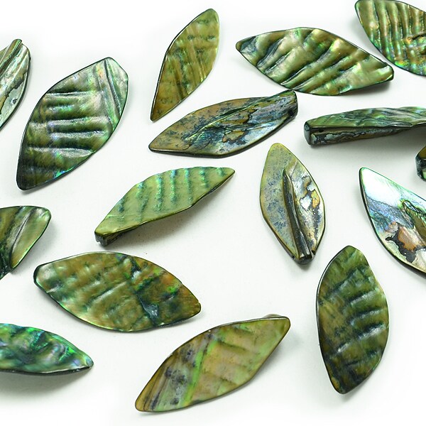 Sea Shell Hand Crafted Leaf Shape 14 Beads (15mm x 45mm) - Teal