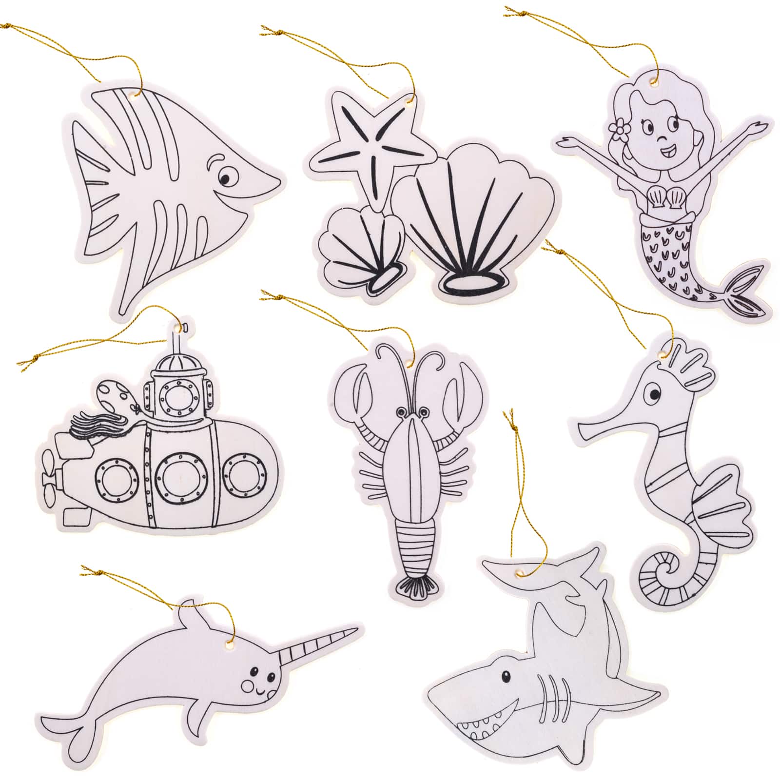 Sealife Color-In Wood Ornaments by Creatology™