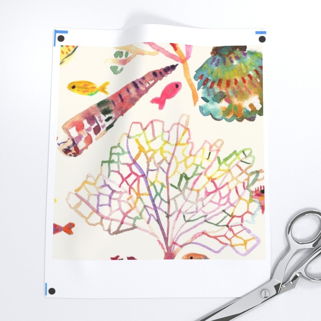 Seashells Watercolor Painted Sea Life Coral Reef Underwater Starfish Beach House Custom Printed Fabric by Spoonflower Various Fabrics by the Yard or Fat Quarter