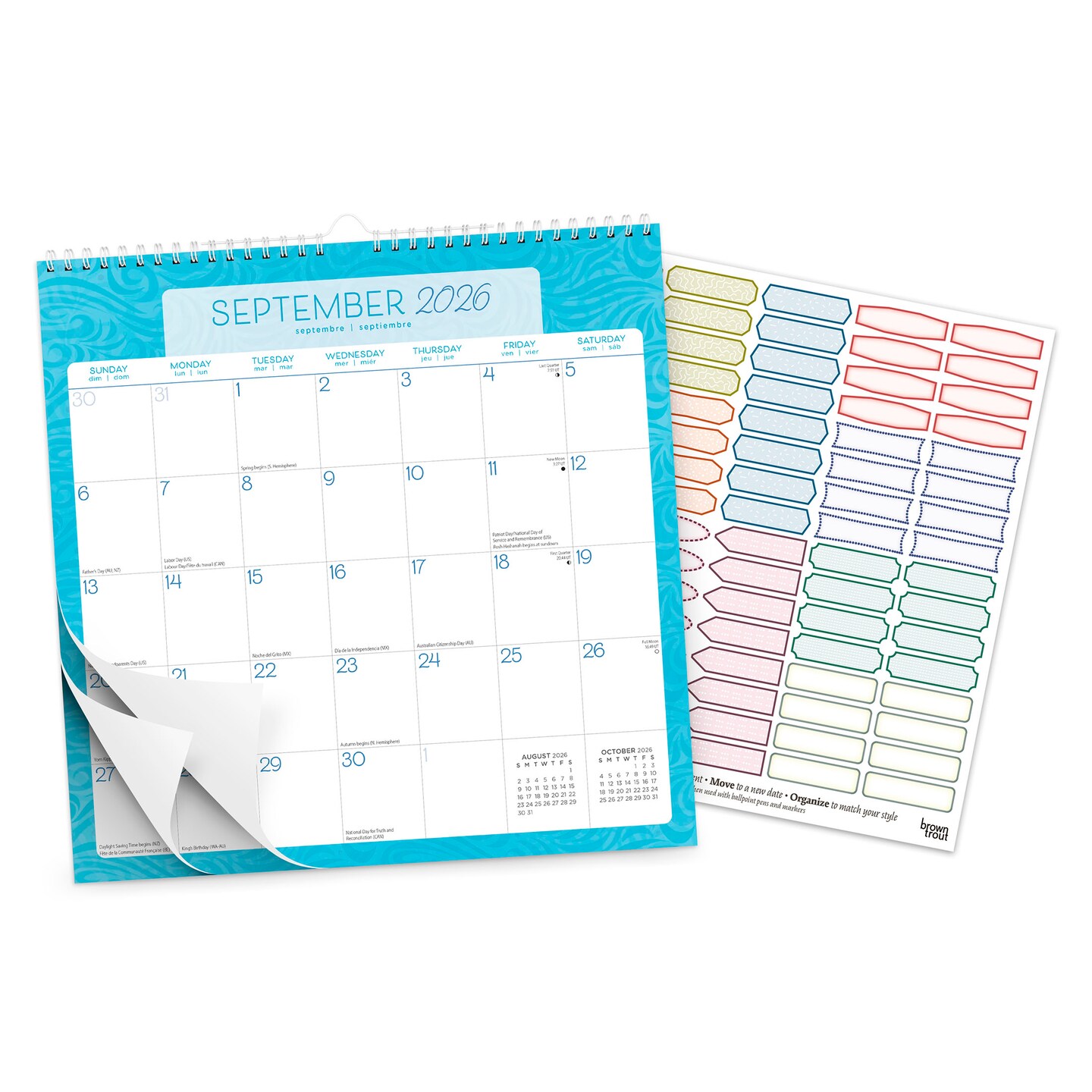 Seaside Currents | 2026 12 x 12 Inch (Hanging) Monthly Square Wire-O Calendar | Sticker Sheet
