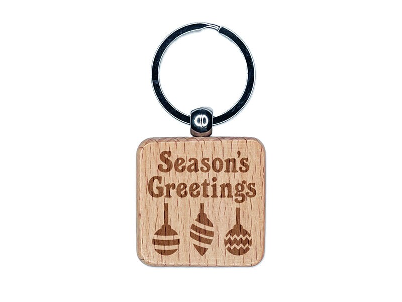 Season's Greetings Christmas Ornaments Engraved Wood Square Keychain Tag Charm