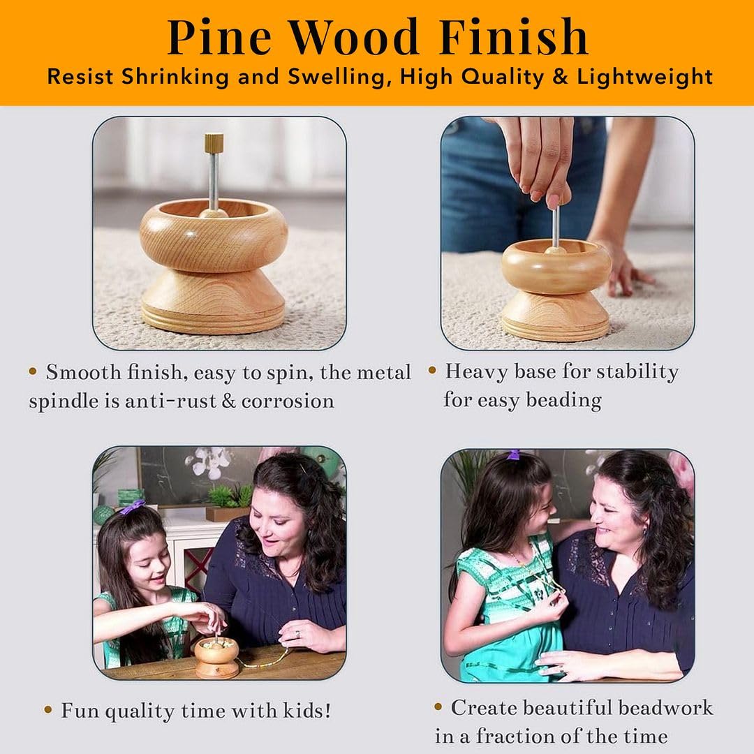 Seed Bead Spinner for Jewelry Making Kit - Clay Bead Spinner with Big Eye Beading Needle & 3 Meter Wire - Necklace Bracelet Maker Wooden - Birthday Anniversary Decorations Christmas Gifts - Pinewood